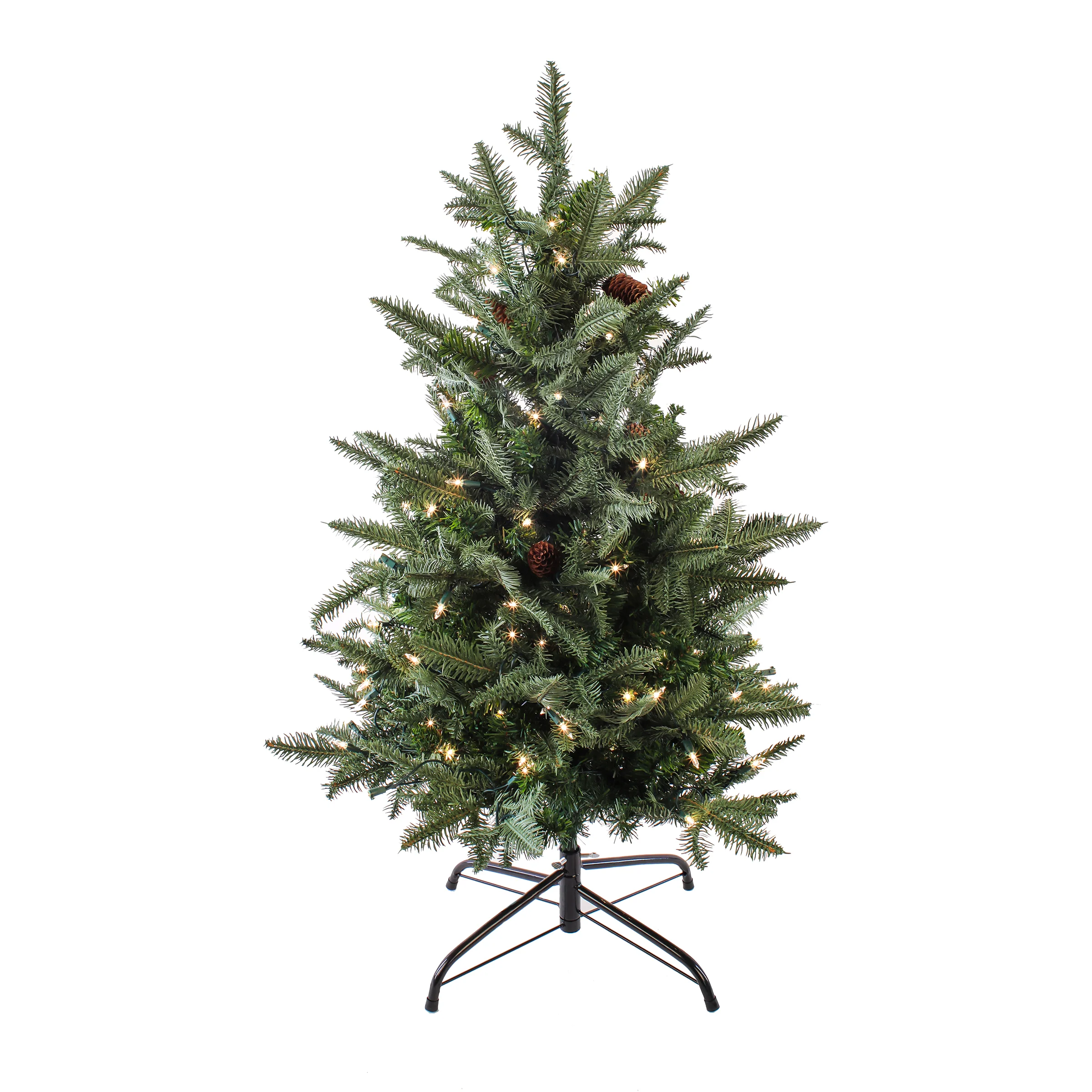 This Evergreen Pathway tree features Feel Real® branch tip technology, creating a tree with remarkable realism. These crush-resistant branch tips are molded from real tree branches for an authentic living tree appearance. It is pre-strung with 100 clear lights that remain lit even if a bulb burns out. Crafted with high quality materials and hinged branches for easy set up and includes a sturdy metal folding stand. For indoor display only. Plug in.