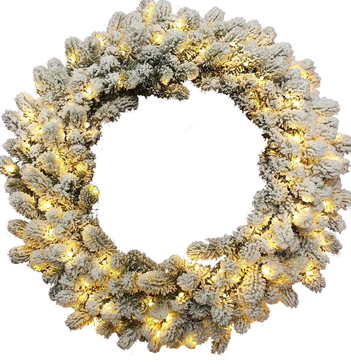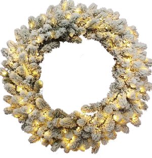 Your winter wonderland collection shouldn’t just end at your tree. Bring the enchantment of a dreamy white forest right into your living room, while decorating this holiday season. Composed of the same realistic tips and snow-covered branches, as the King Flock Tree, our King Flock Wreath will not disappoint with its effortless and quick shaping process.