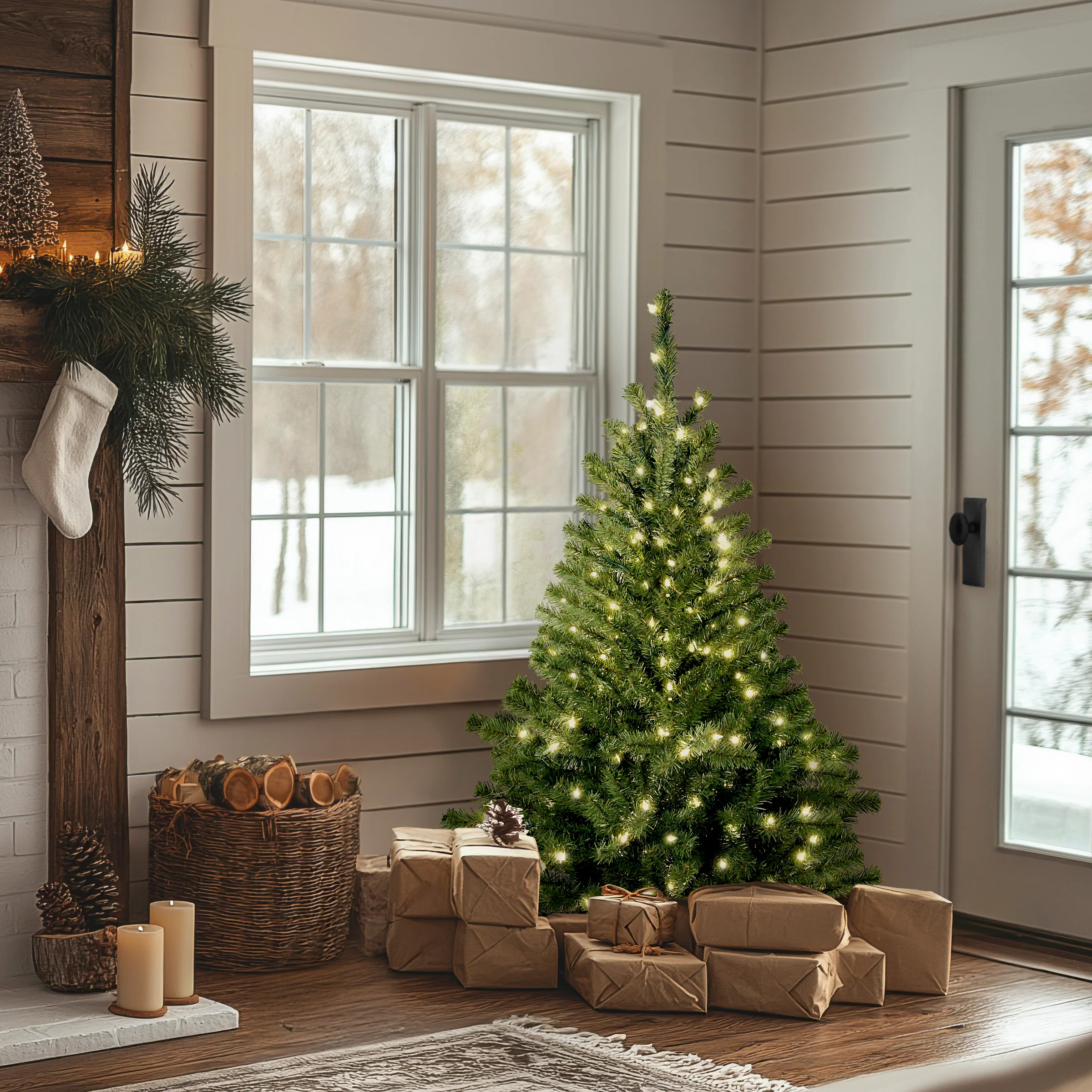 - Pre-lit with 100 UL listed clear lights. Plug in.