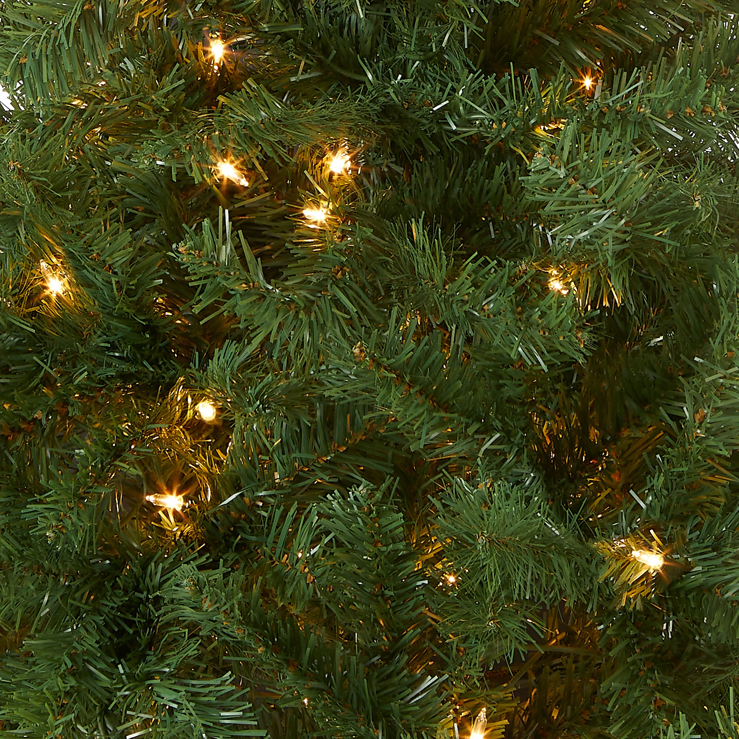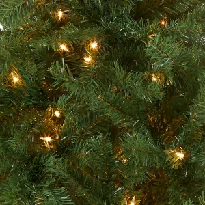 At 4 feet tall, the Eastern Spruce tree is great for tabletop display or for adding holiday cheer to children’s or secondary rooms. It is pre-strung with 100 clear lights that remain lit even if a bulb burns out. Slip on the tree stand feet, fluff out the branches and add your favorite holiday decorations. Plug in.