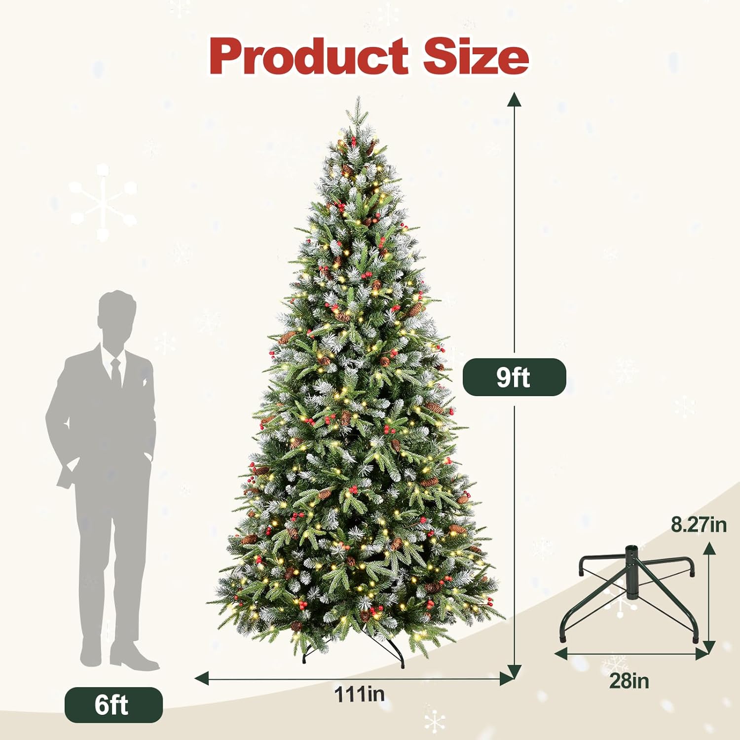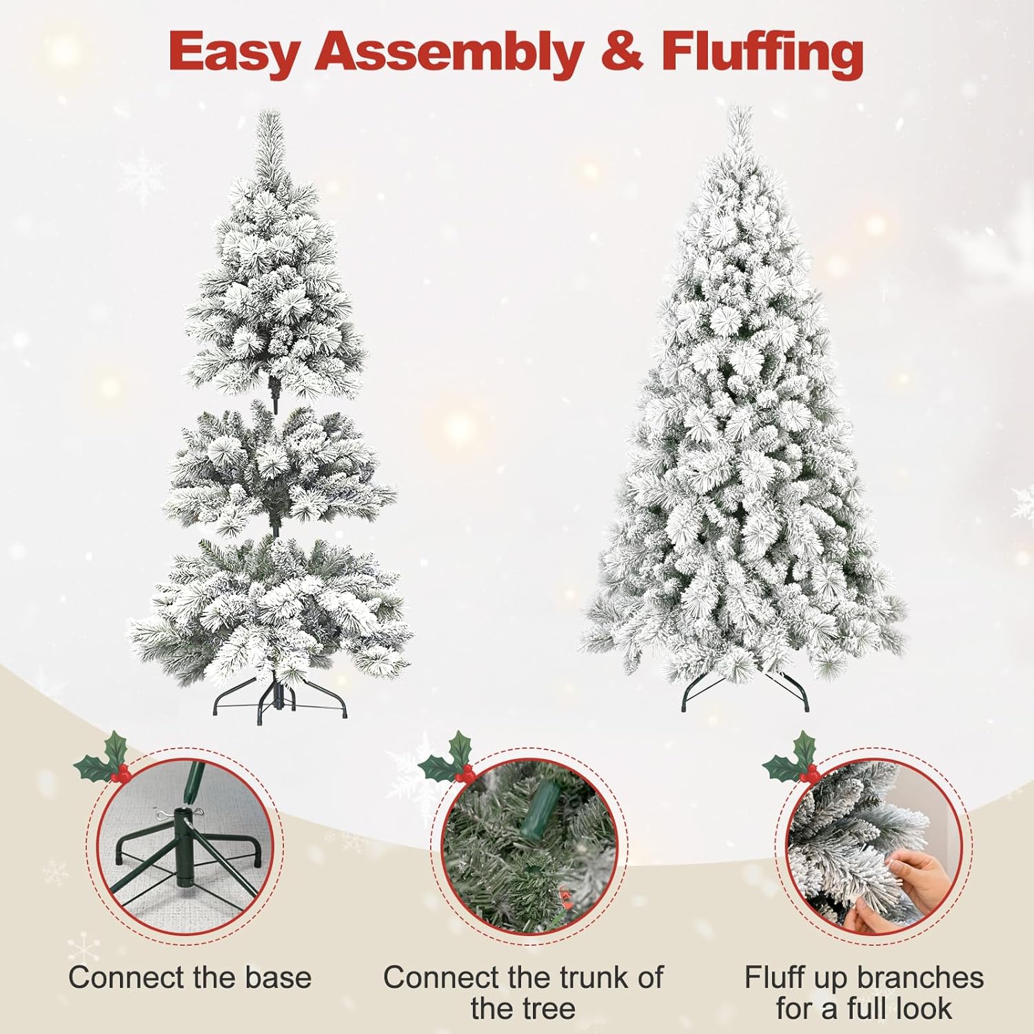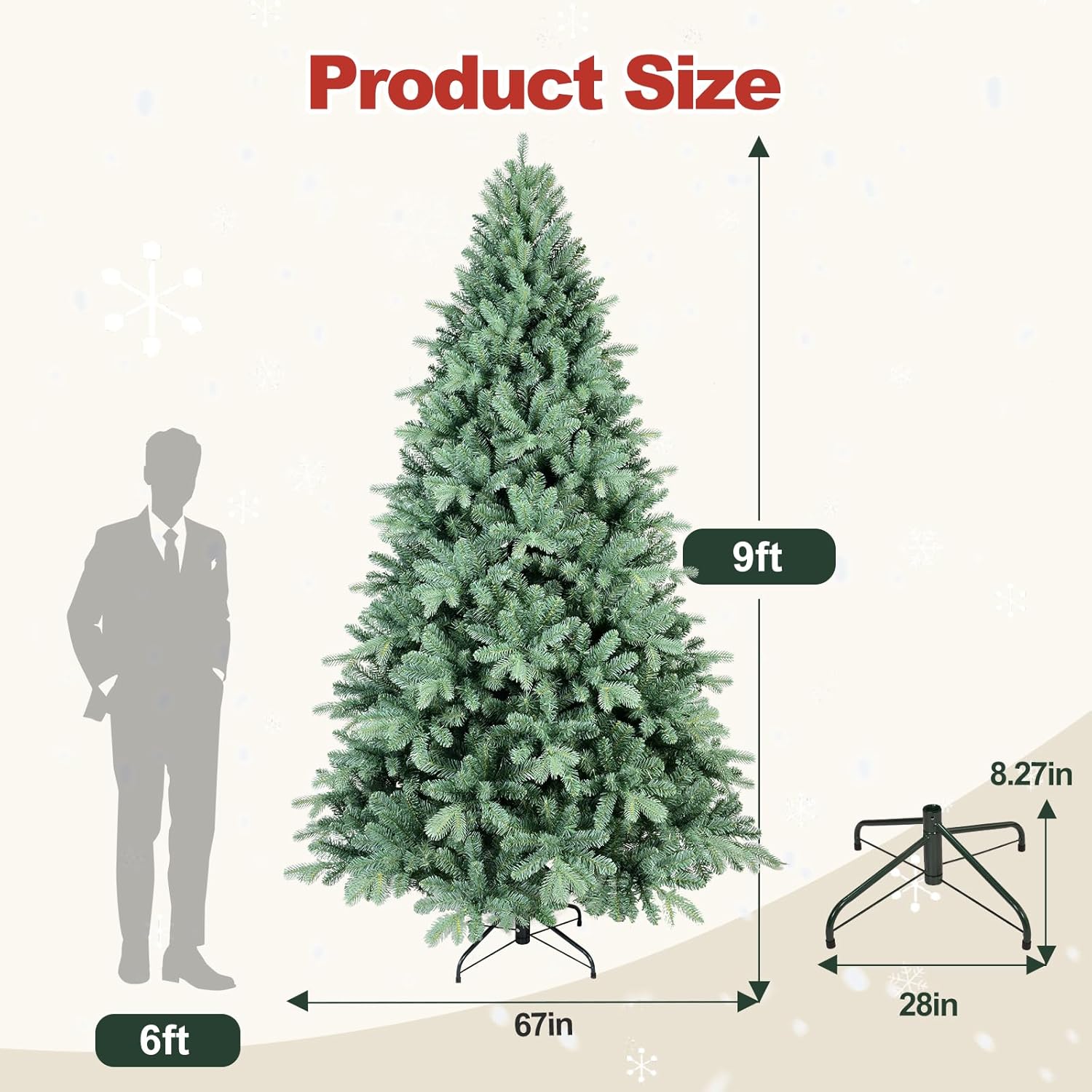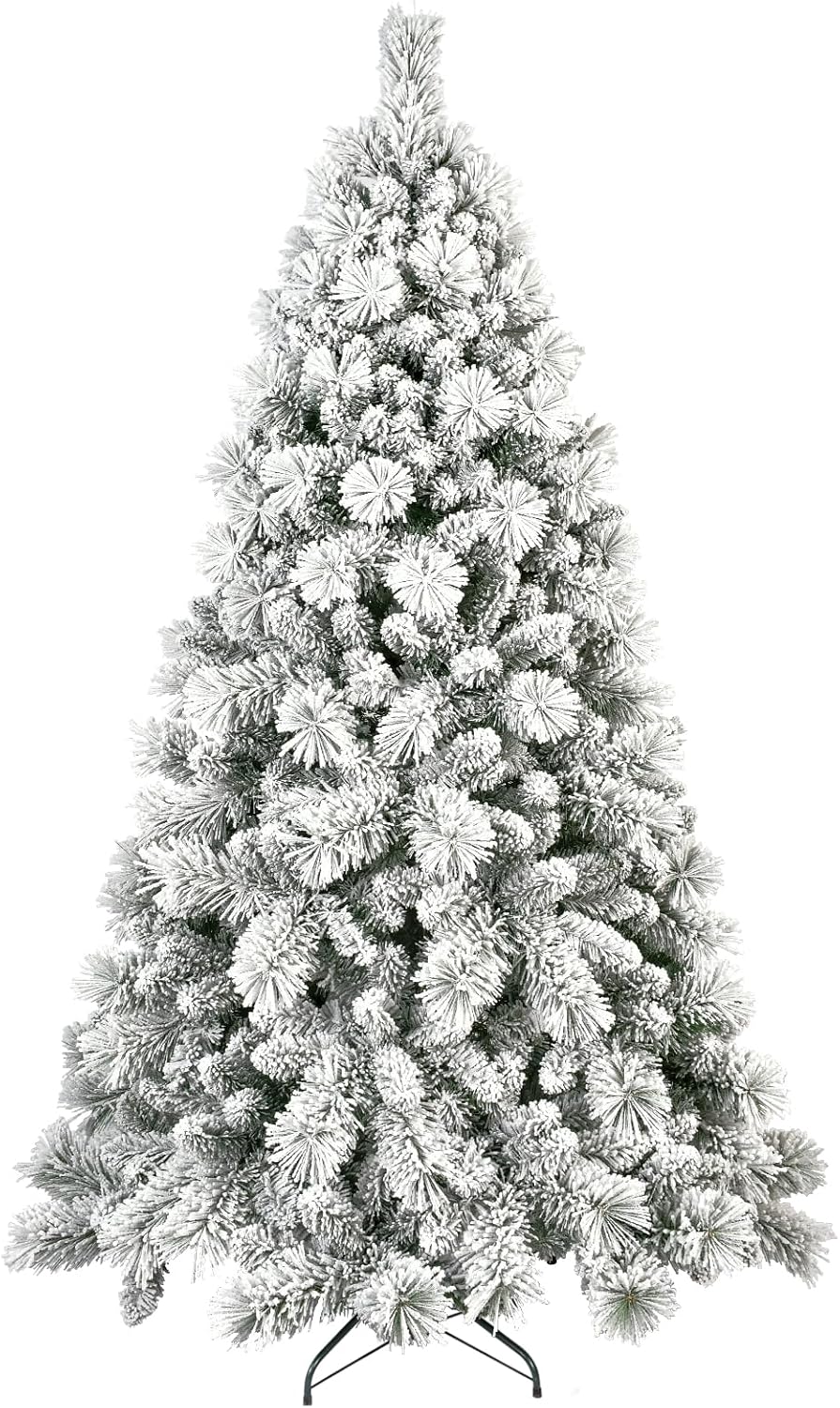 - 【The right one is the best】this Snow frosted christmas tree is available in 4ft/5ft/6ft/7ft/7.5ft/8ft/9ft for your selection. You no longer need to worry about picking the right tree for a low or high ceiling, a small room or a spacious hall. Therefore, we believe that our Christmas trees will be the most suitable choice for you to decorate a great holiday season!