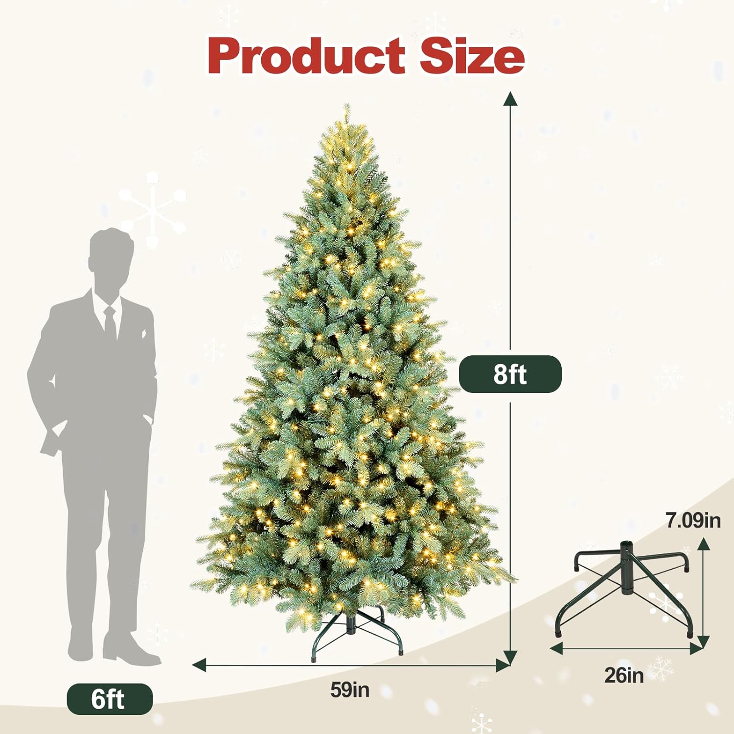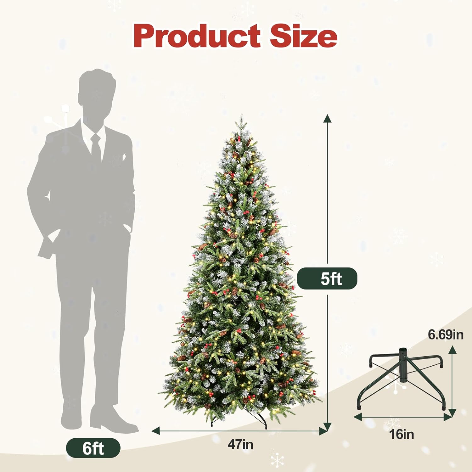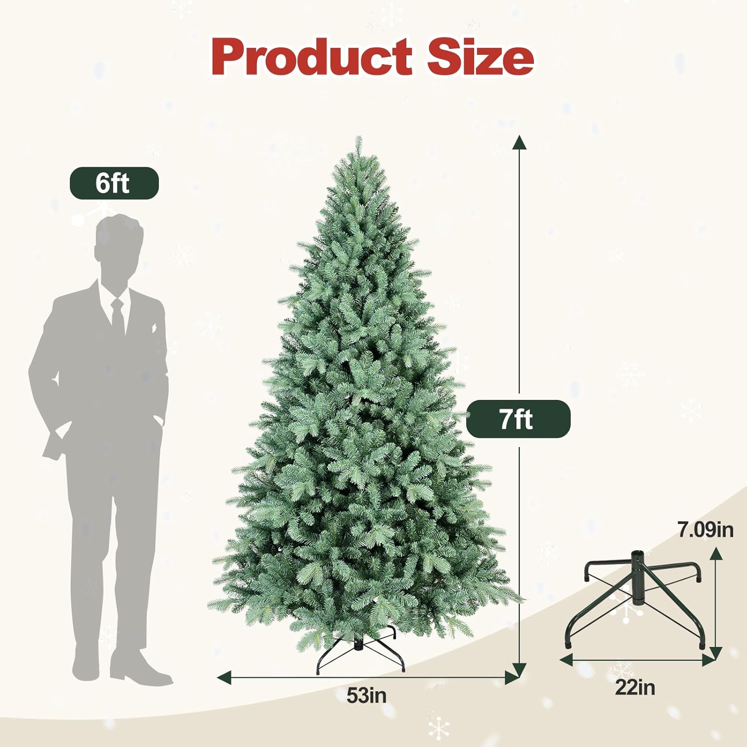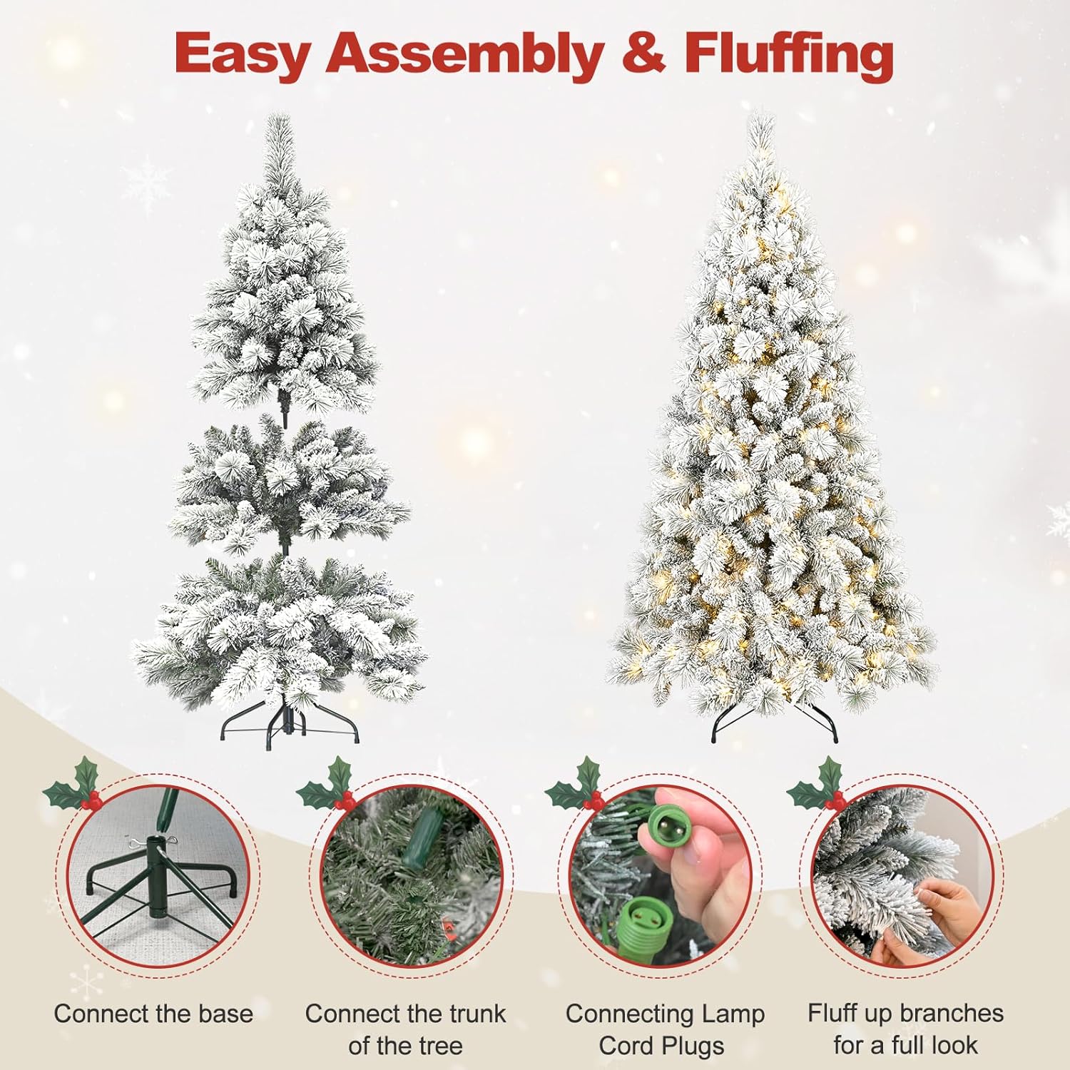 - 【The right one is the best】this Snow frosted christmas tree is available in 4ft/5ft/6ft/7ft/7.5ft/8ft/9ft for your selection. You no longer need to worry about picking the right tree for a low or high ceiling, a small room or a spacious hall. Therefore, we believe that our Christmas trees will be the most suitable choice for you to decorate a great holiday season!