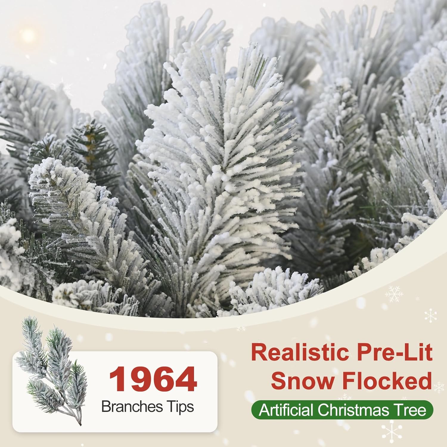 - 【CREATES A REALISTIC APPEARANCE】 angexi's Snow Flocked Christmas tree is 4 ft in height and consists of 350 Mixed PE + PVC branch tips. The white flocking and green branches mimic the color and texture of a real winter pine tree more lifelike.