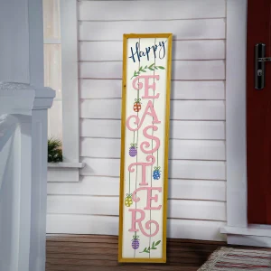 - Includes one decorated Easter sign porch decoration that measures 43 inches in height and 9 inches in width and features a fold out easel attachment on the back to support a standing position as well as an included rope loop can be used for hanging