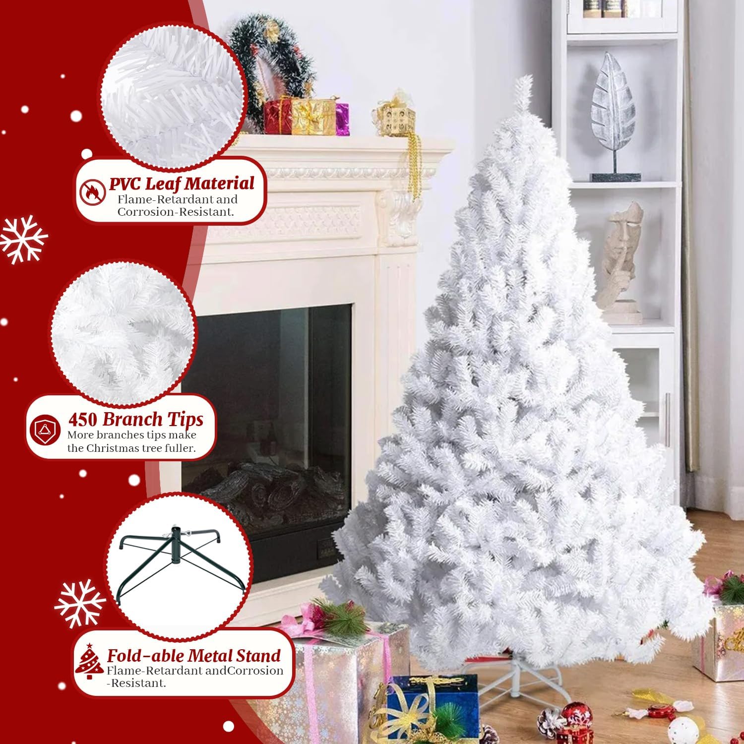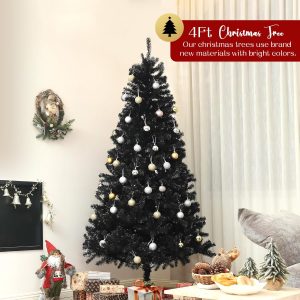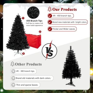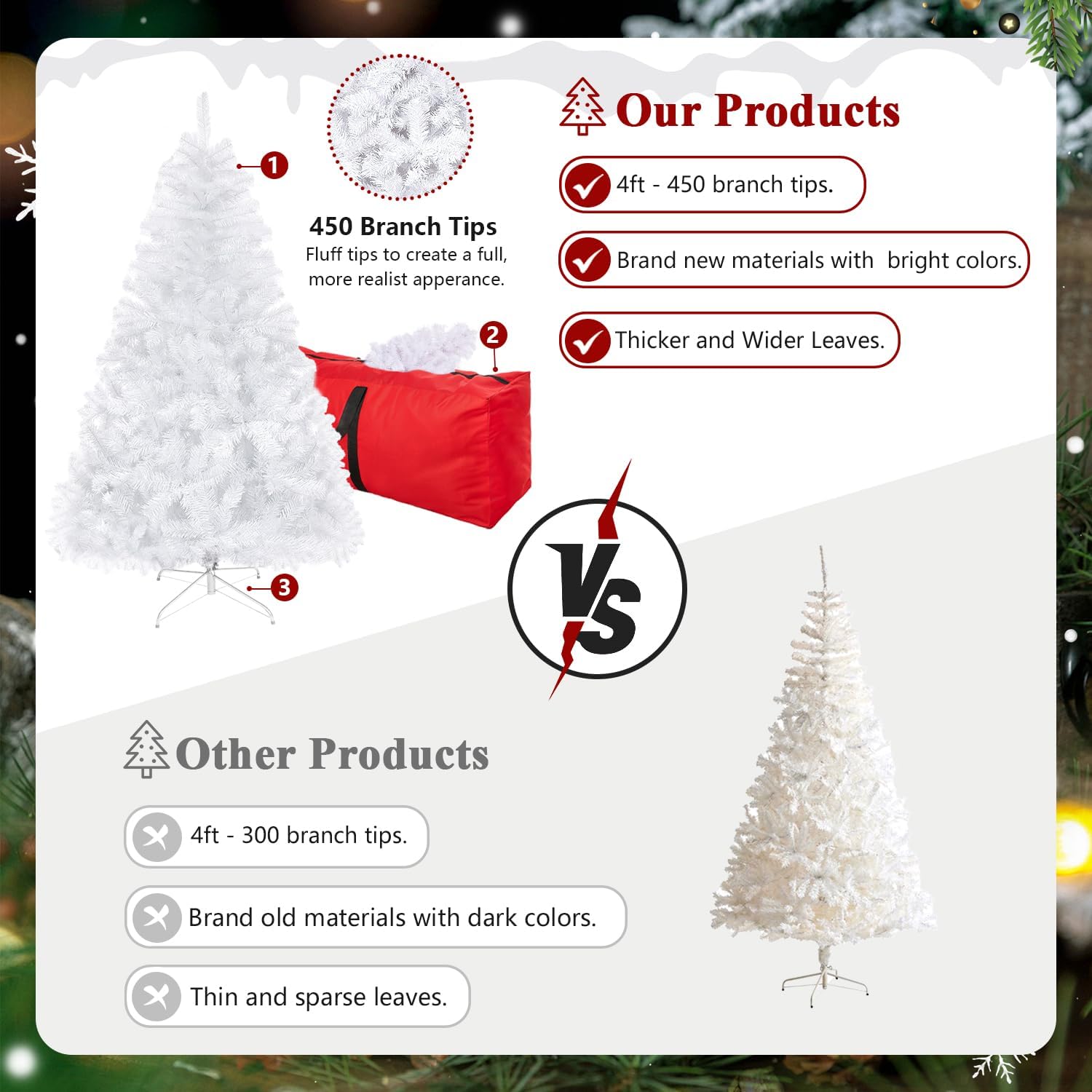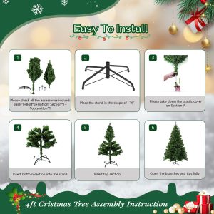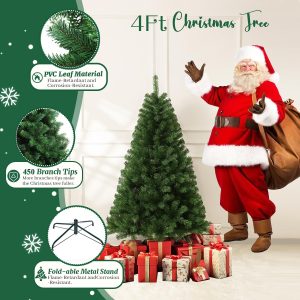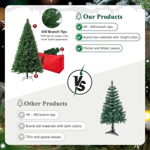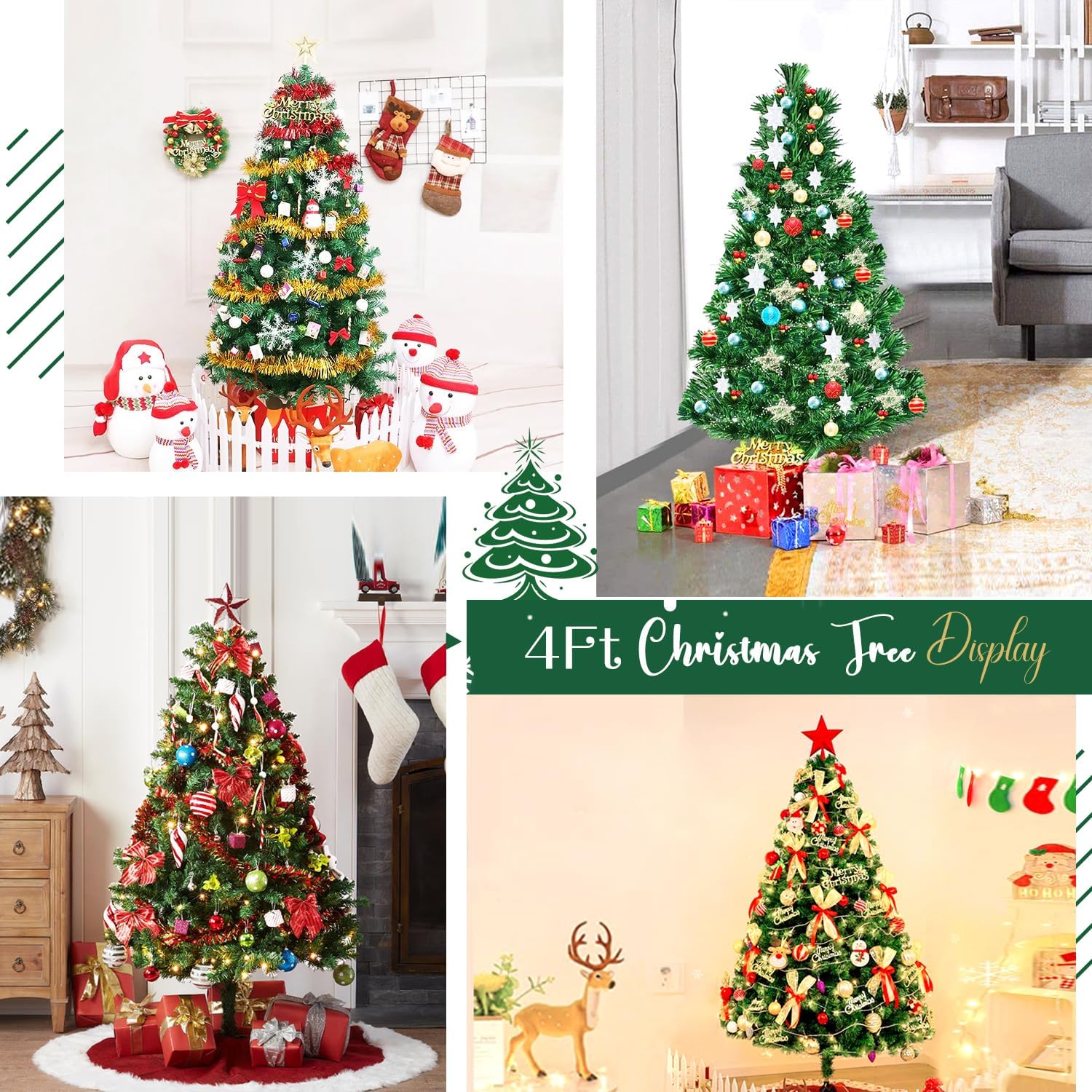 - 【More Branch Tips】4ft fake Christmas tree has 450 branch tips, Made of brand new material with bright and glossy colours, thicker and wider leaves, more branch tips make the slim Christmas tree look more fluffy and more realistic in appearance.Fully open these branches and you will have a perfect Christmas tree to the fullest enjoy your Christmas holiday.