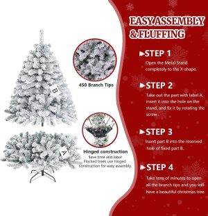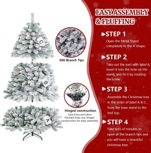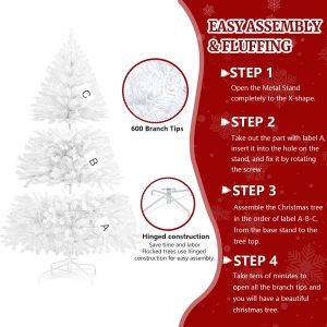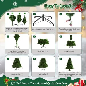 - 【Easy to Assemble】The Christmas tree is hung with a hang tag in capital letters to guide you in assembling each section of the tree in the correct order.We have included instruction to make your installation easier and faster, please refer to the instruction manual for details of assembly and unfolding of branches, and other notes.