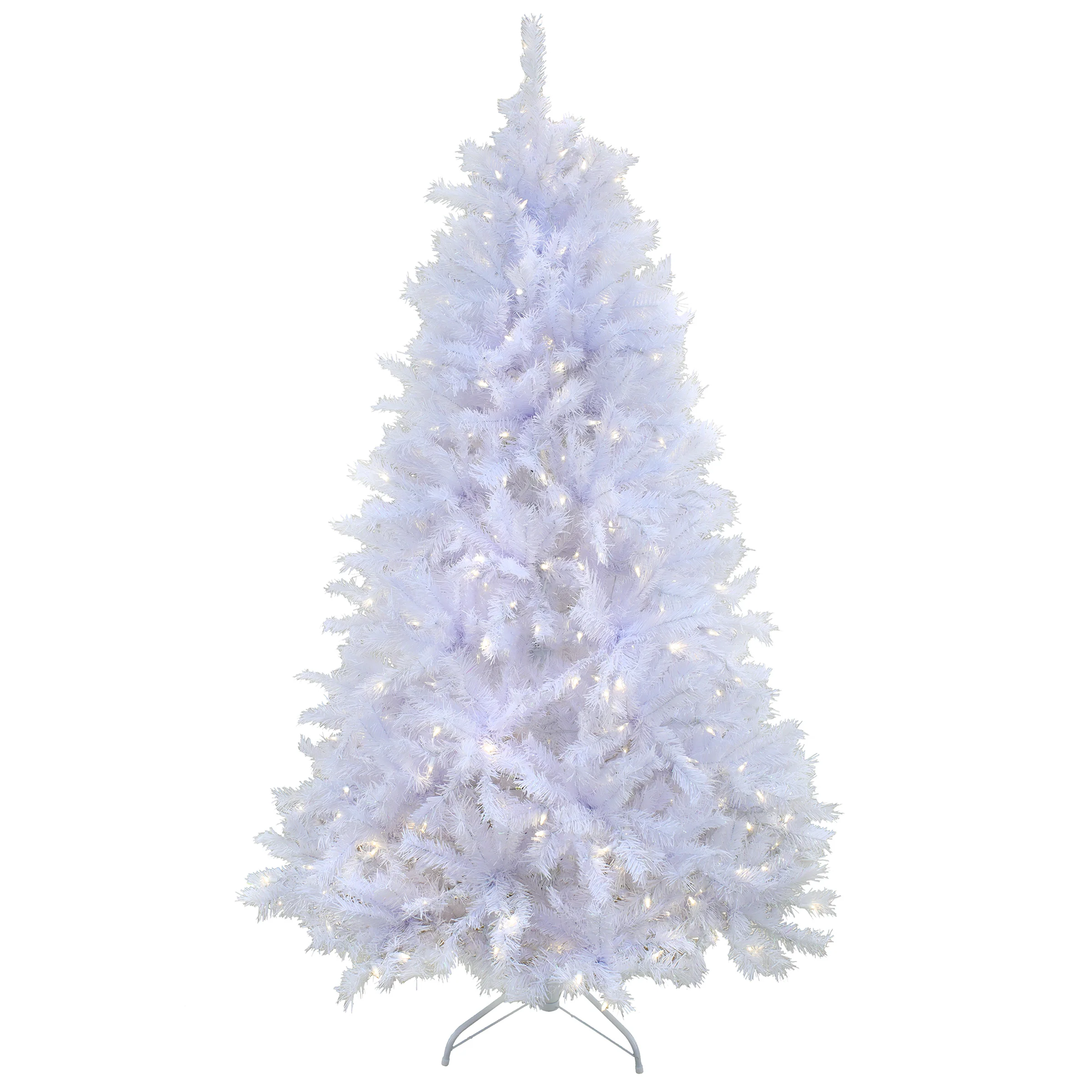 The Millville White Tree welcomes winter into your home. Features the PowerConnect™ through-the-pole lighting system that eliminates the need for connecting multiple light strings. This tree is pre-lit with 400 Dual Color® LED lights which offers an array of color options. Included is a foot pedal switch to control 10 different light colors and actions. This tree features hinged branch construction for ease of assembly. Sturdy metal tree stand is included. Plug in.