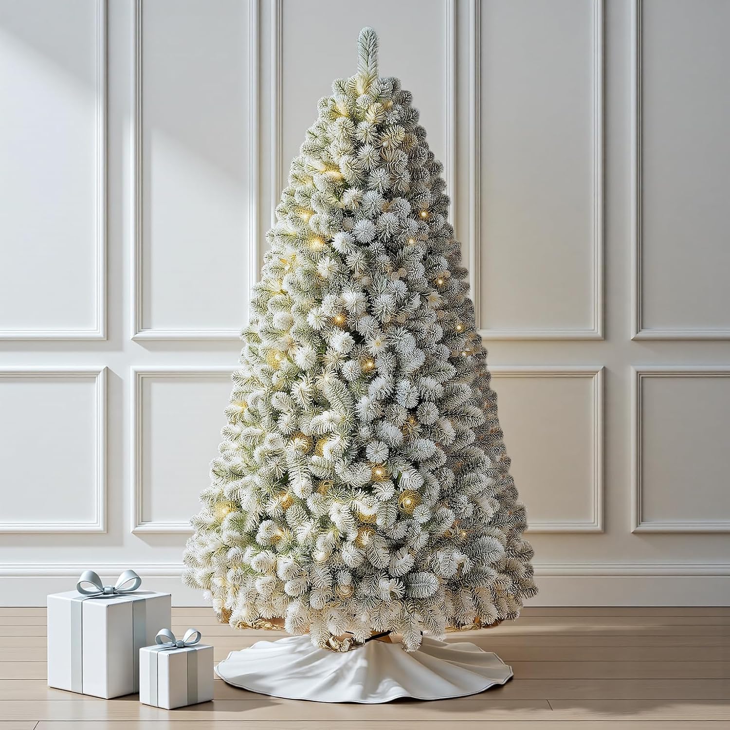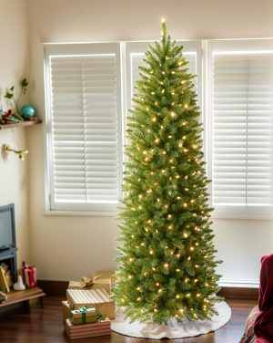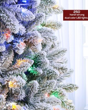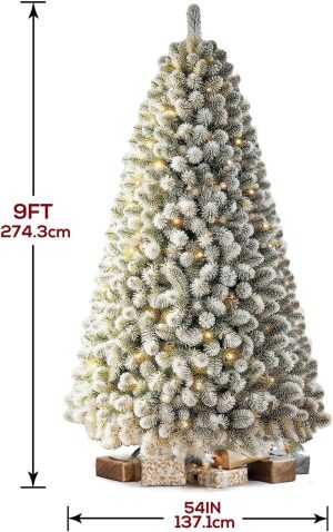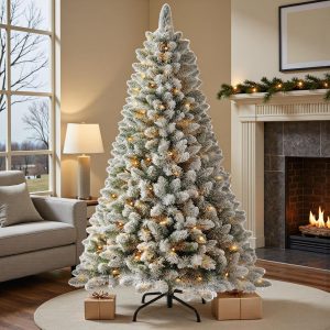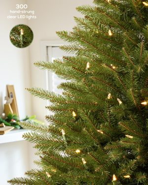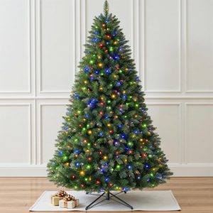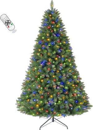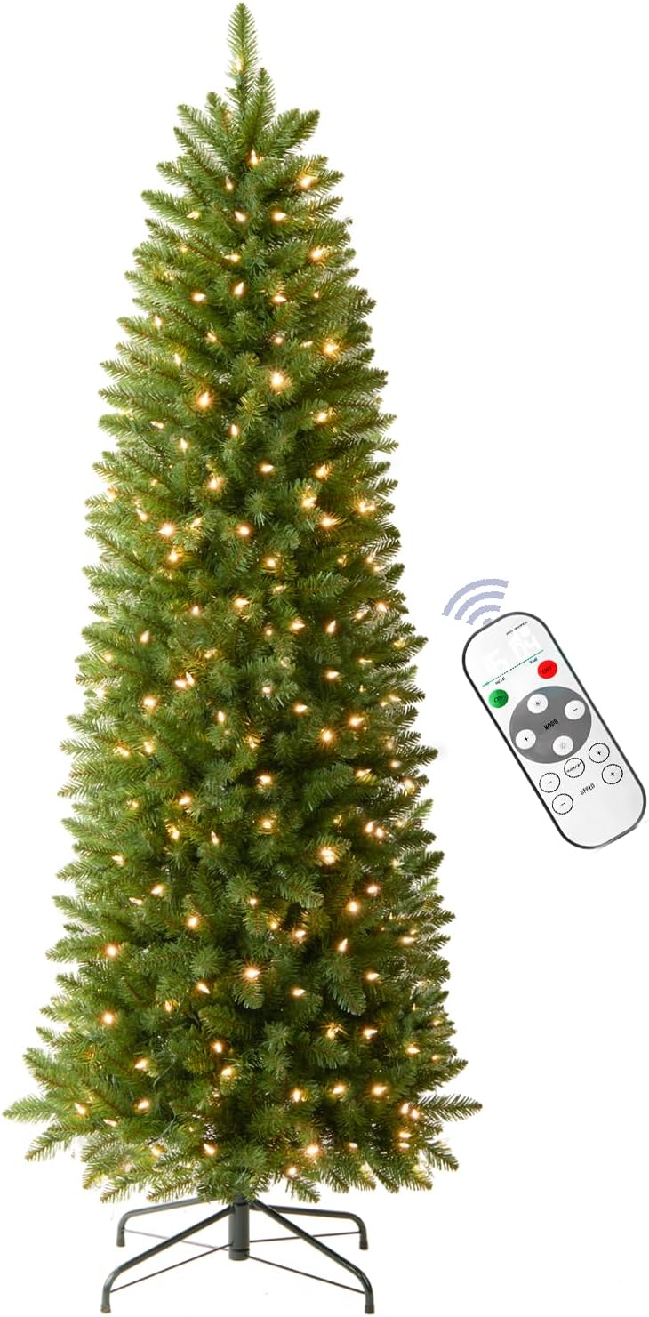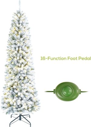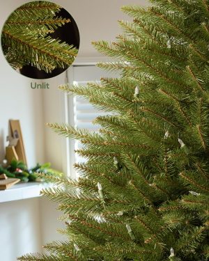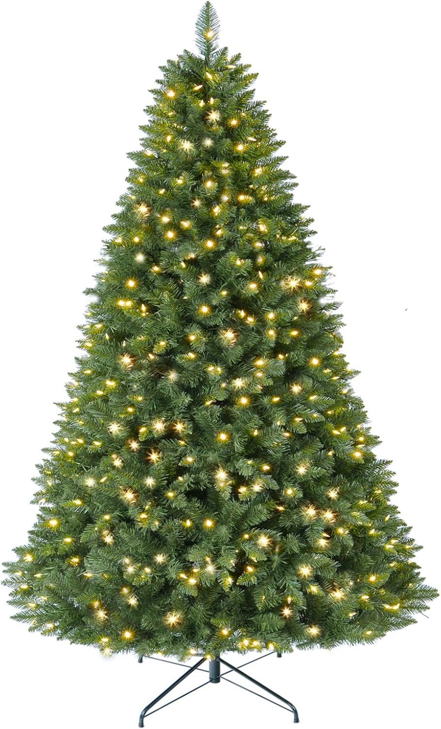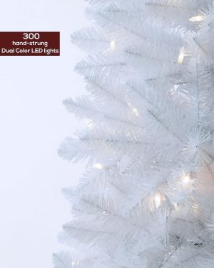 6 FT Pre-lit Christmas Tree, Artificial Pine Spruce Christmas Tree 980 PVC Branch Tips 300 Warm White Lights, Easy Assembly with Metal Stand and Hinged Branches Decoration