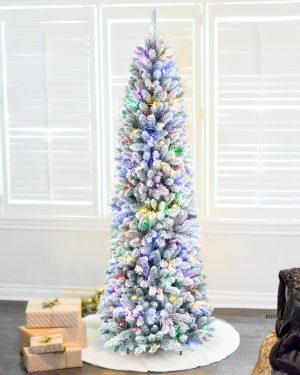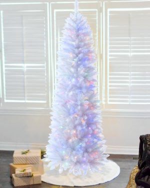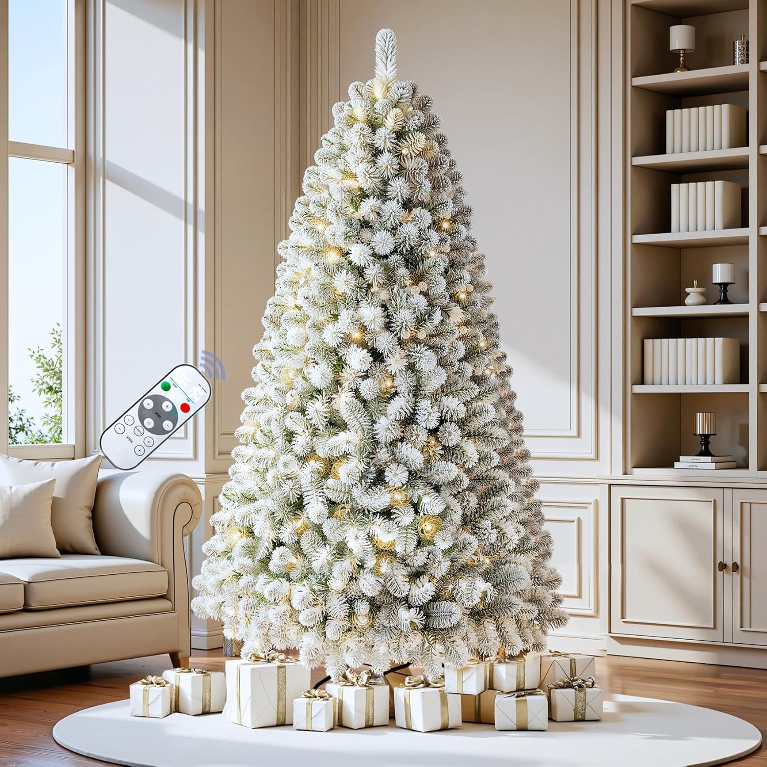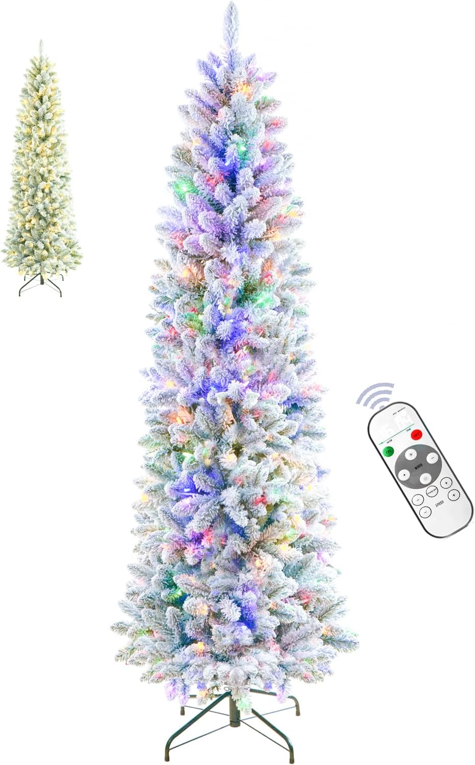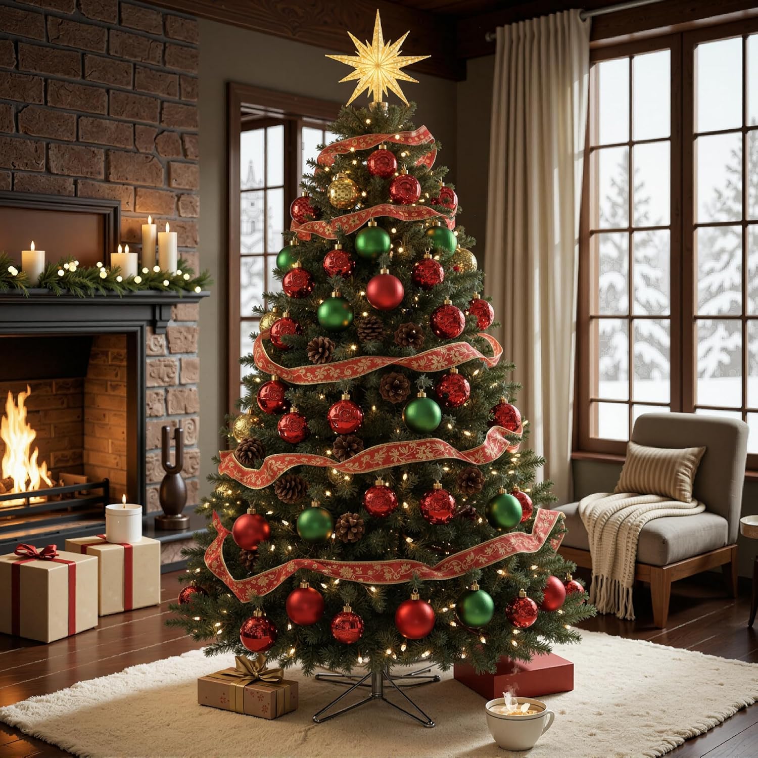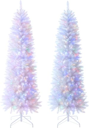 6 FT Pre-lit Christmas Tree, Artificial Pine Spruce Christmas Tree 980 PVC Branch Tips 300 Warm White Lights, Easy Assembly with Metal Stand and Hinged Branches Decoration