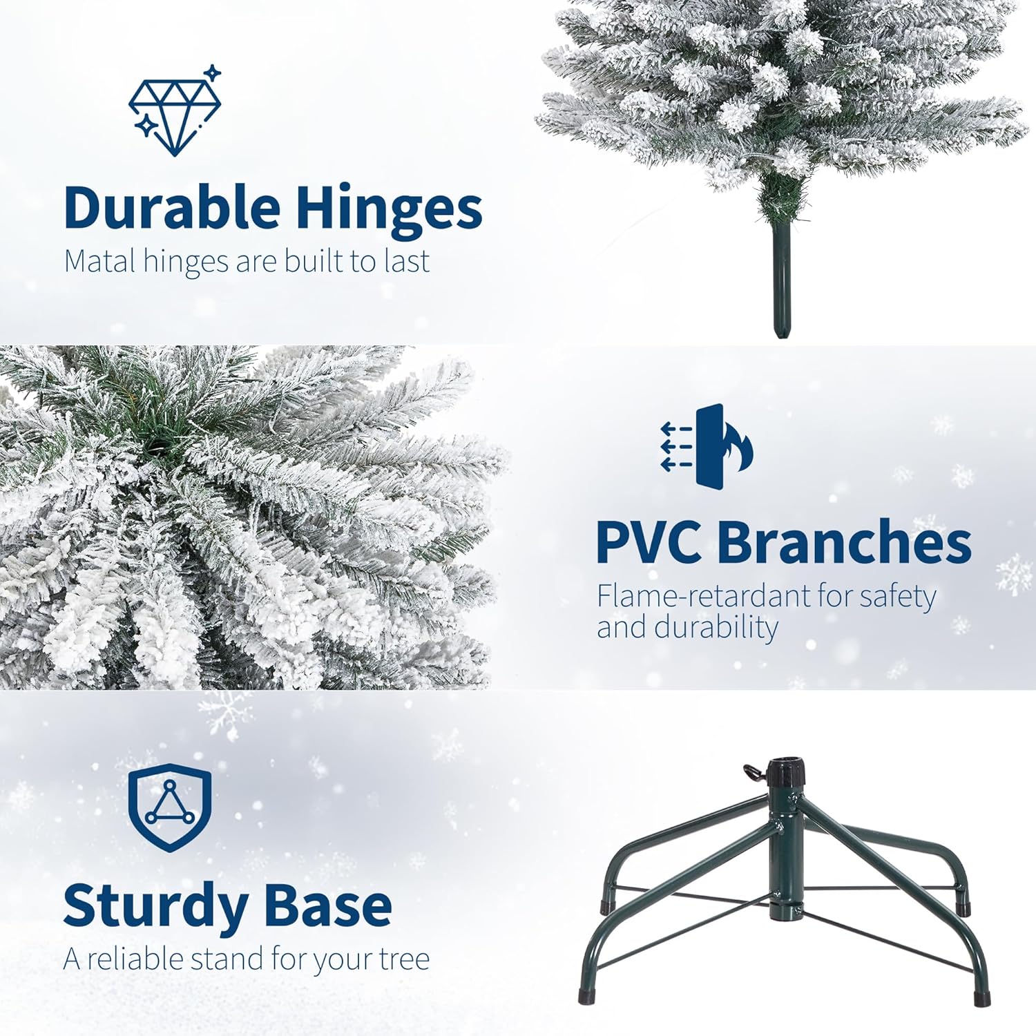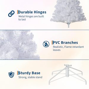 - PVC Tips & Metal Stand: The branches and tips of this Christmas tree are made of durable PVC, while the stand is made of sturdy metal and provides stability, and padded feet prevent sliding on floors.