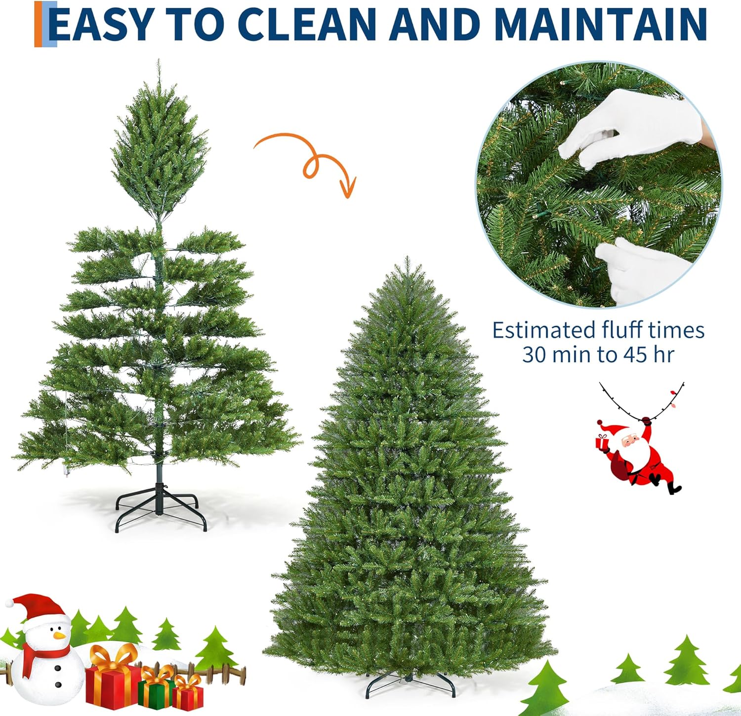 - Space-saving Collapsible Design: Once the festivities are over, simply detach the segmented trunk into sections and fold the foldable base for compact storage, making it easy to tuck away until next year