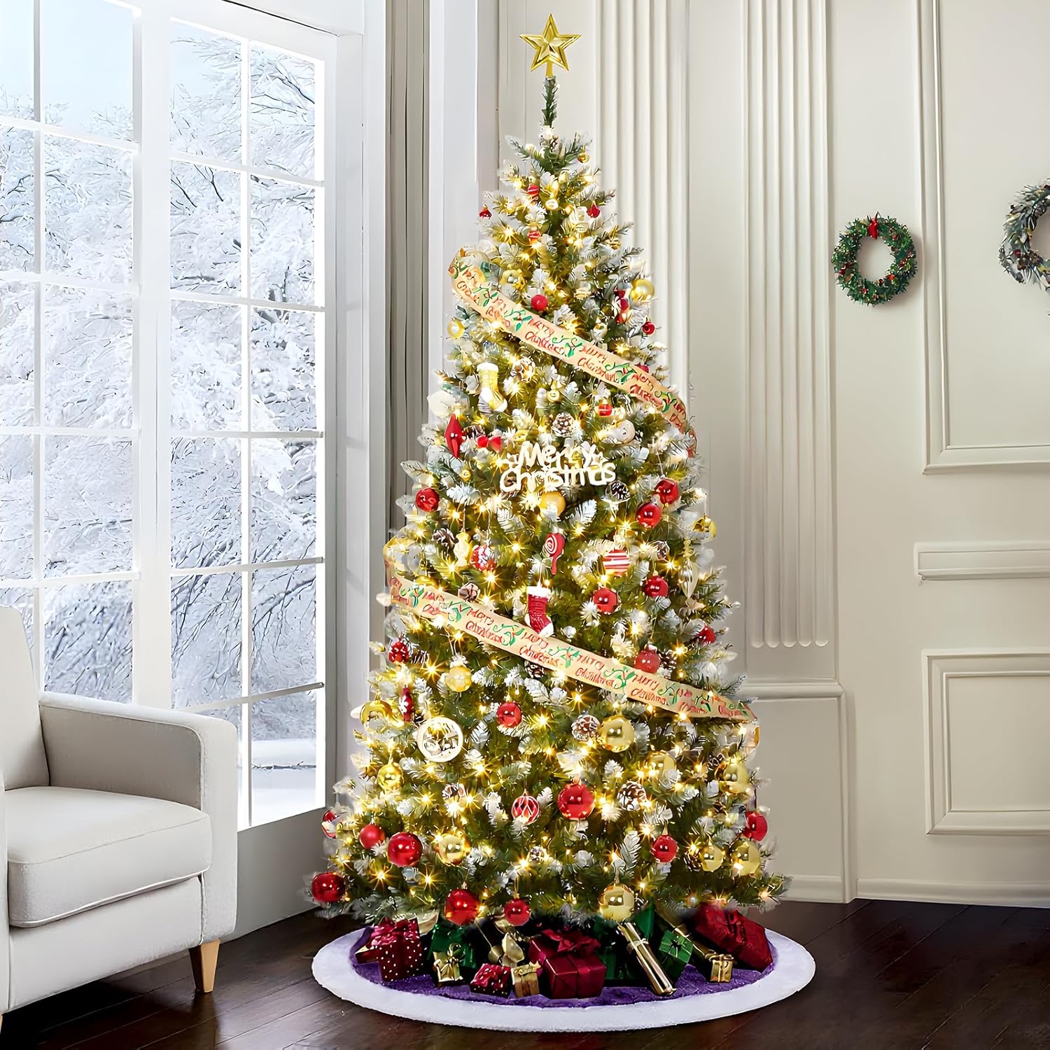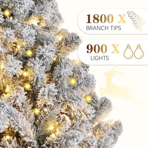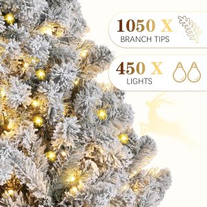 - Snowy Look: The Christmas tree features lush green branches covered in white flocking, creating a stunning snowy white and green appearance that adds a magical winter atmosphere to your holiday decor.