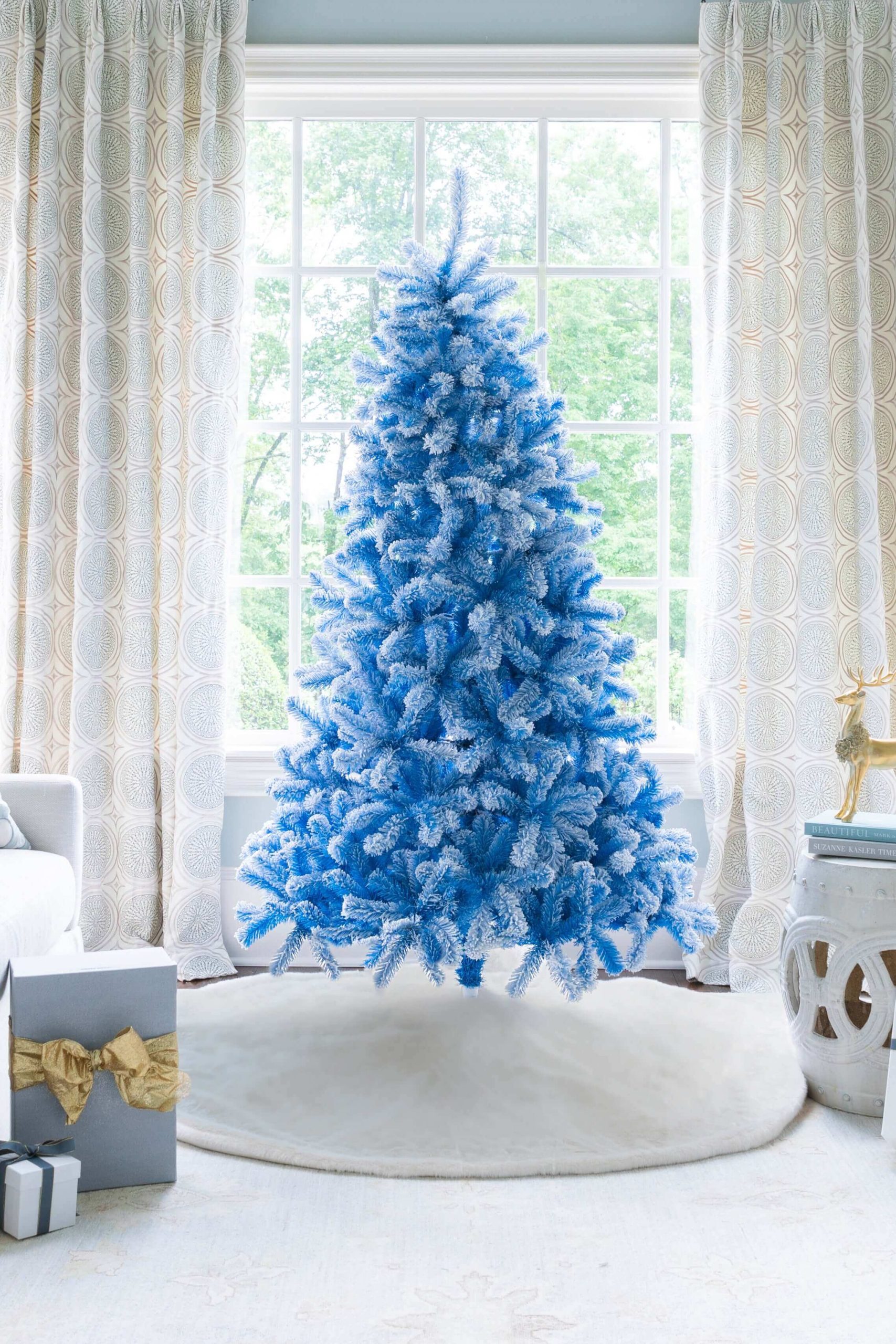 Be the first to review “7.5′ Duchess Blue Flock Artificial Christmas Tree with 600 Warm White LED Lights” Cancel reply
