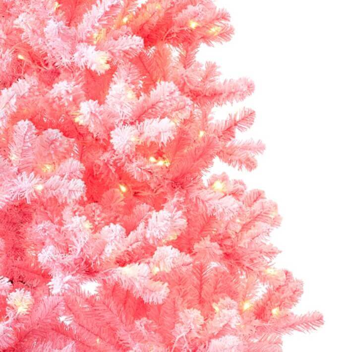 7.5′ Duchess Pink Flock Artificial Christmas Tree with 600 Warm White LED Lights