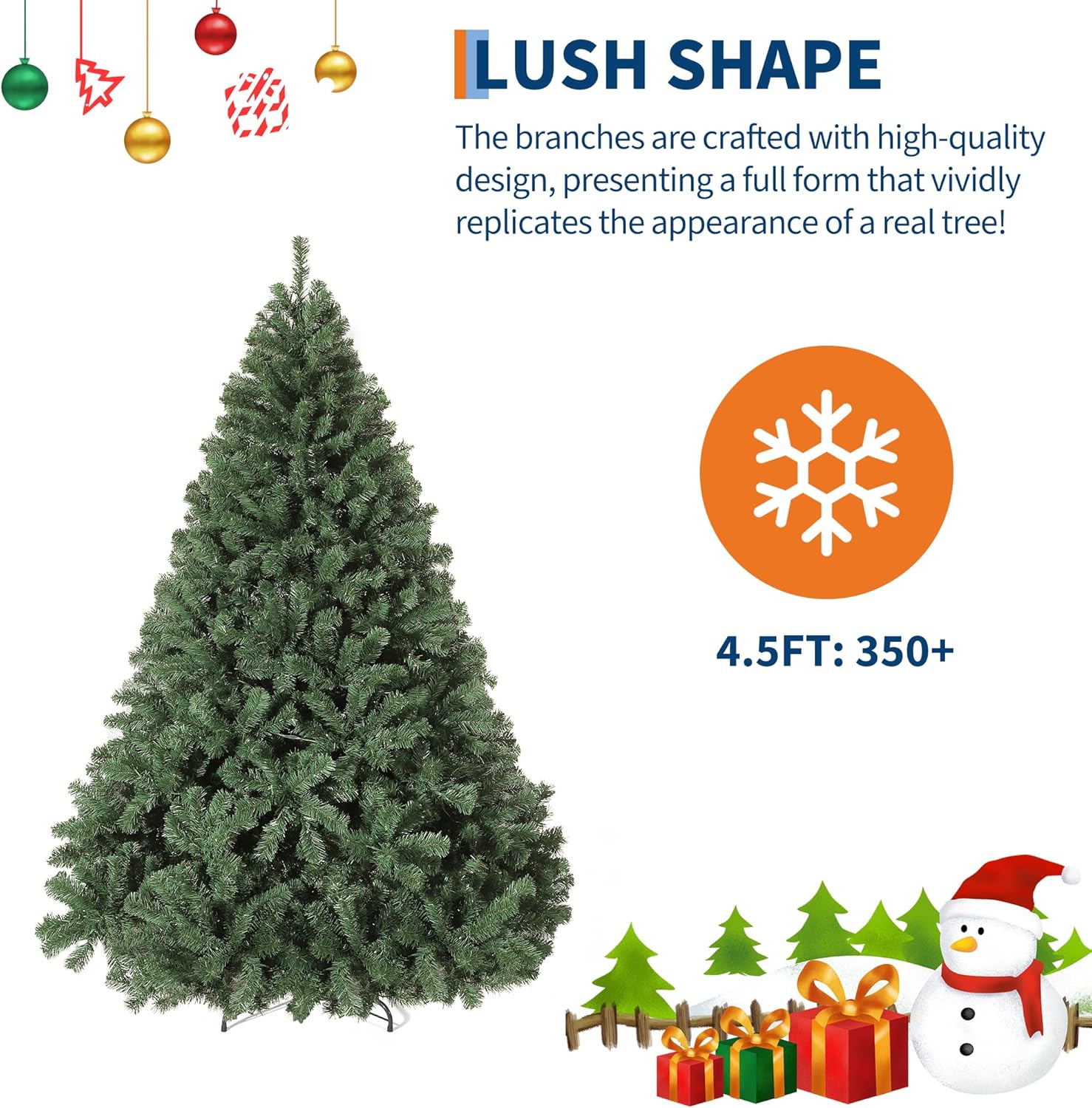 - 【Realistic, Long-Lasting Design】Hundreds of finely crafted branch tips create a full, tapered silhouette that mimics a real pine tree. Supported by a strong foldable metal stand, the Xmas tree will brighten your holiday decor for many joyful seasons to come.