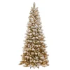 The Cullen Pine Slim tree offers an extra thin profile making it a great choice for display in corners or in areas where floor space is limited. This tree features snow dusted branch tips and is trimmed with red berries and pinecones. Three section constr