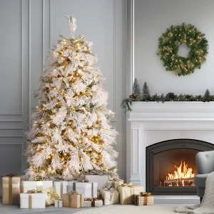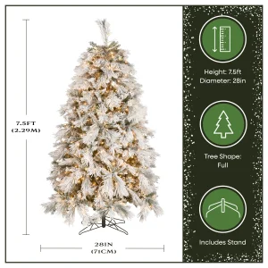 7.5 ft. Pre-Lit Flocked Bavarian Pine Tree with Clear Lights