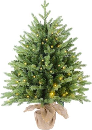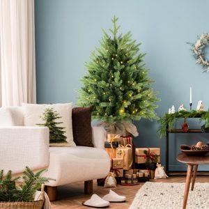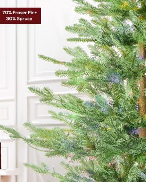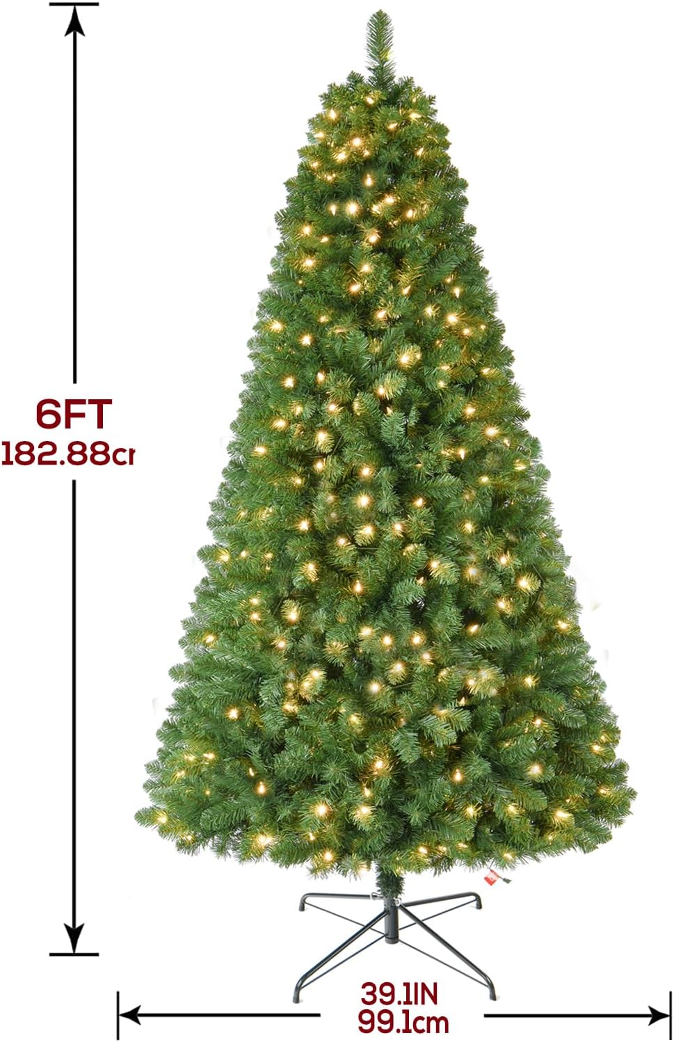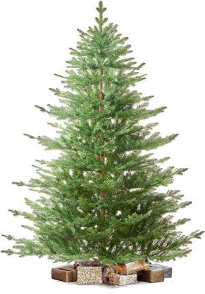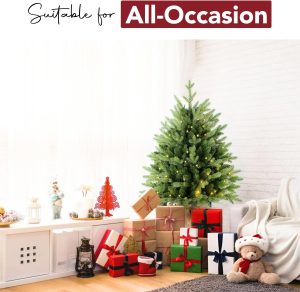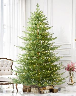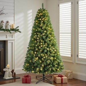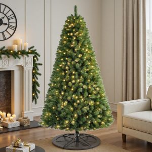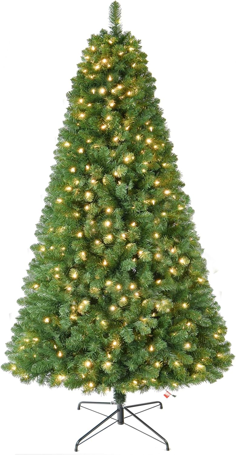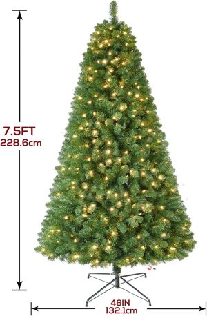 7.5 FT Prelit Christmas Tree, Artificial Spruce Christmas Tree with 350 Warm White LED Lights, 1100 PVC Branch Tips, Easy Assembly/Metal Stand/Hinged Branches Decoration
