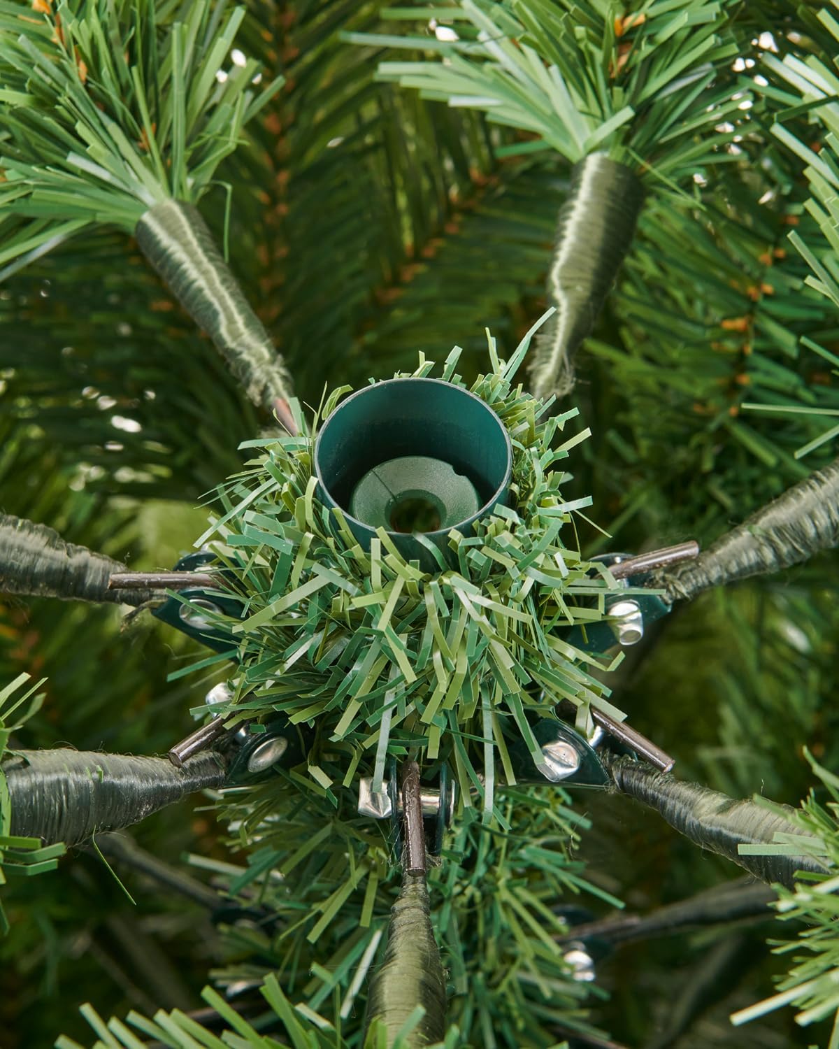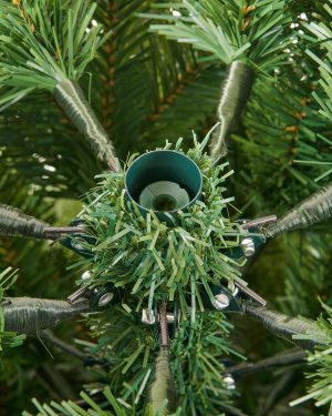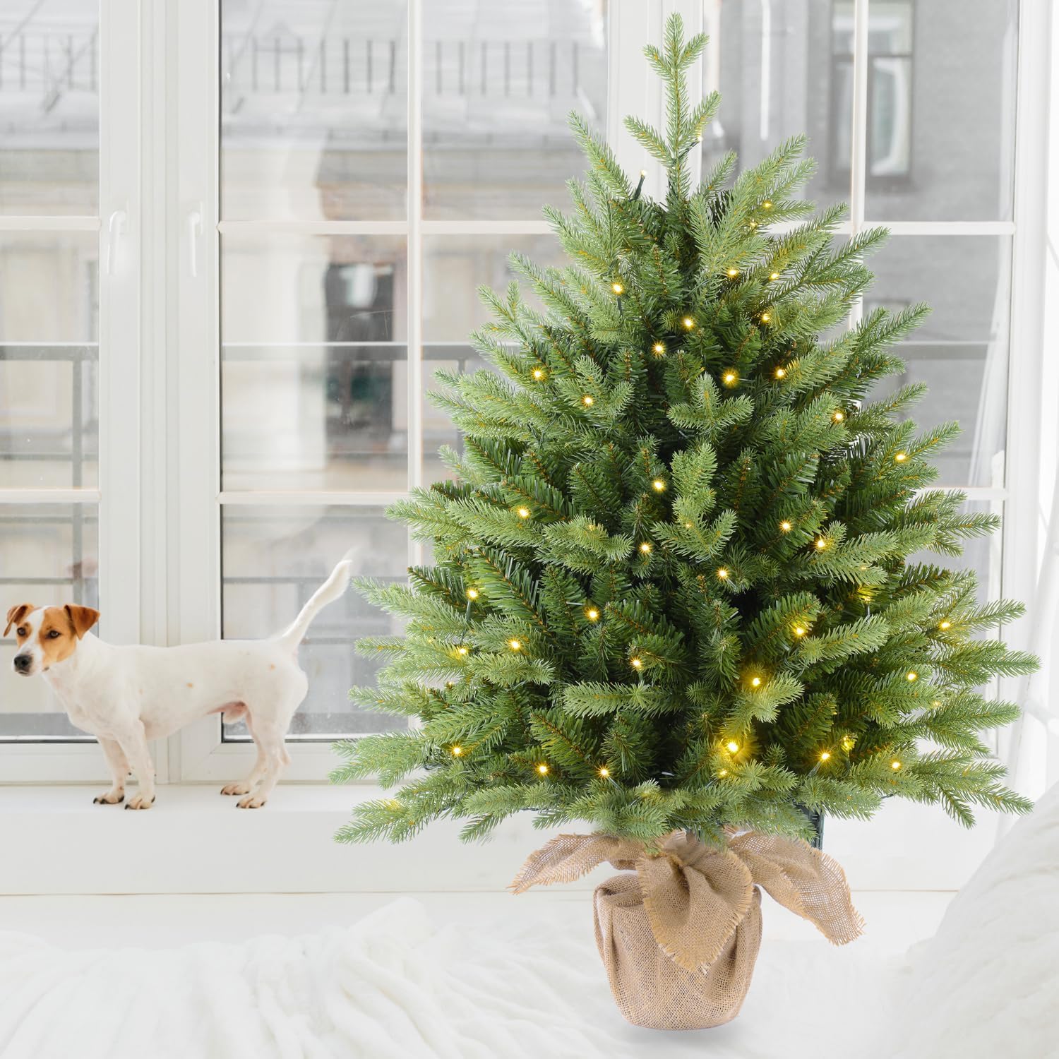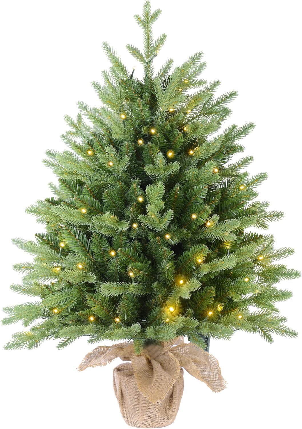 7.5 FT Prelit Christmas Tree, Artificial Spruce Christmas Tree with 350 Warm White LED Lights, 1100 PVC Branch Tips, Easy Assembly/Metal Stand/Hinged Branches Decoration