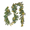 The HGTV Home Collection by National Tree Company Metallic Gold Laurel garland features long-stemmed metallic gold laurel leaves flowing from a flexible vine base. It is trimmed with mini pinecones and clusters of cream berries that add complementing colors and natural appeal. Display this shiny garland over door, window, fireplace mantel, or stairway railing in indoor or covered outdoor locations.