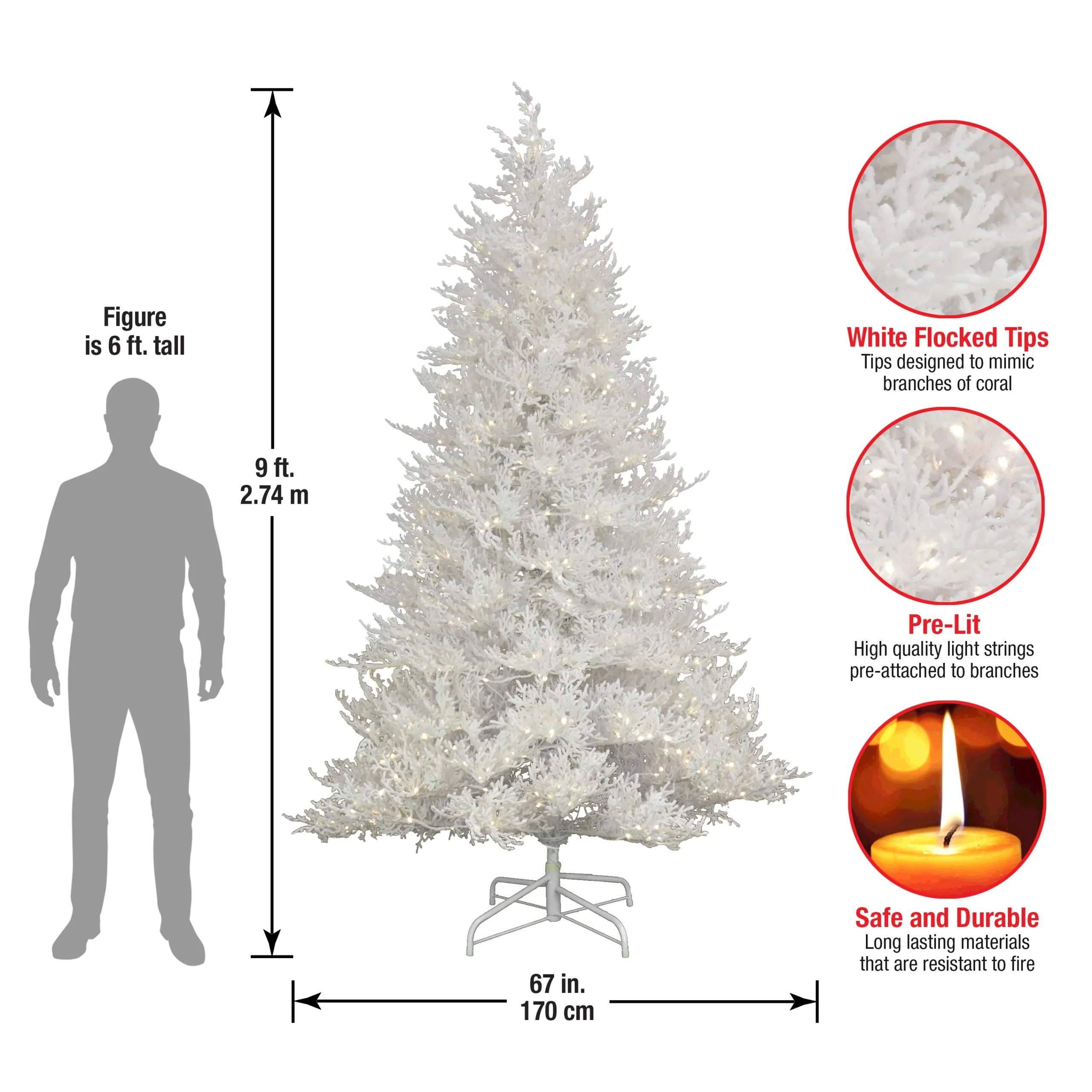 - Measures 9 ft. tall with 67′ diameter