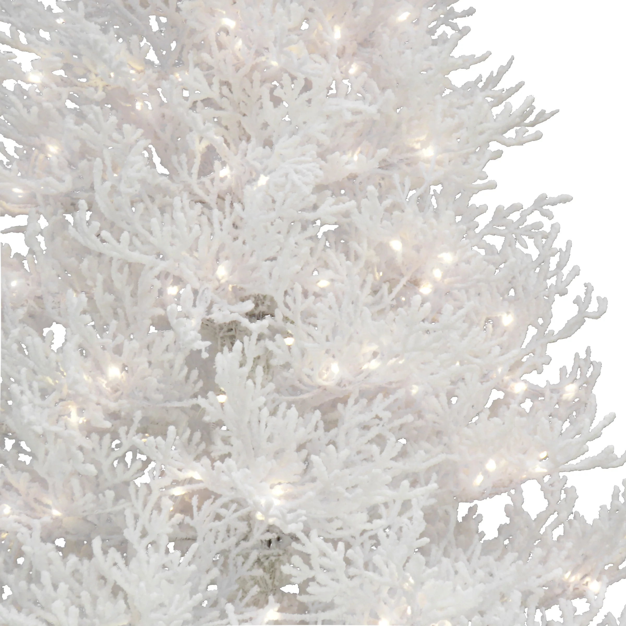 The HGTV Home Collection by National Tree Company unique Sea Coral Tree is bright white and features snow-flocked branches that give the appearance of soft coral tips. It is pre-lit with 1250 warm white LED lights that are energy-efficient and long lasting. Crafted with high quality materials and hinged branches for an easy set up. Includes sturdy metal white folding stand, for indoor display only. Plug in.