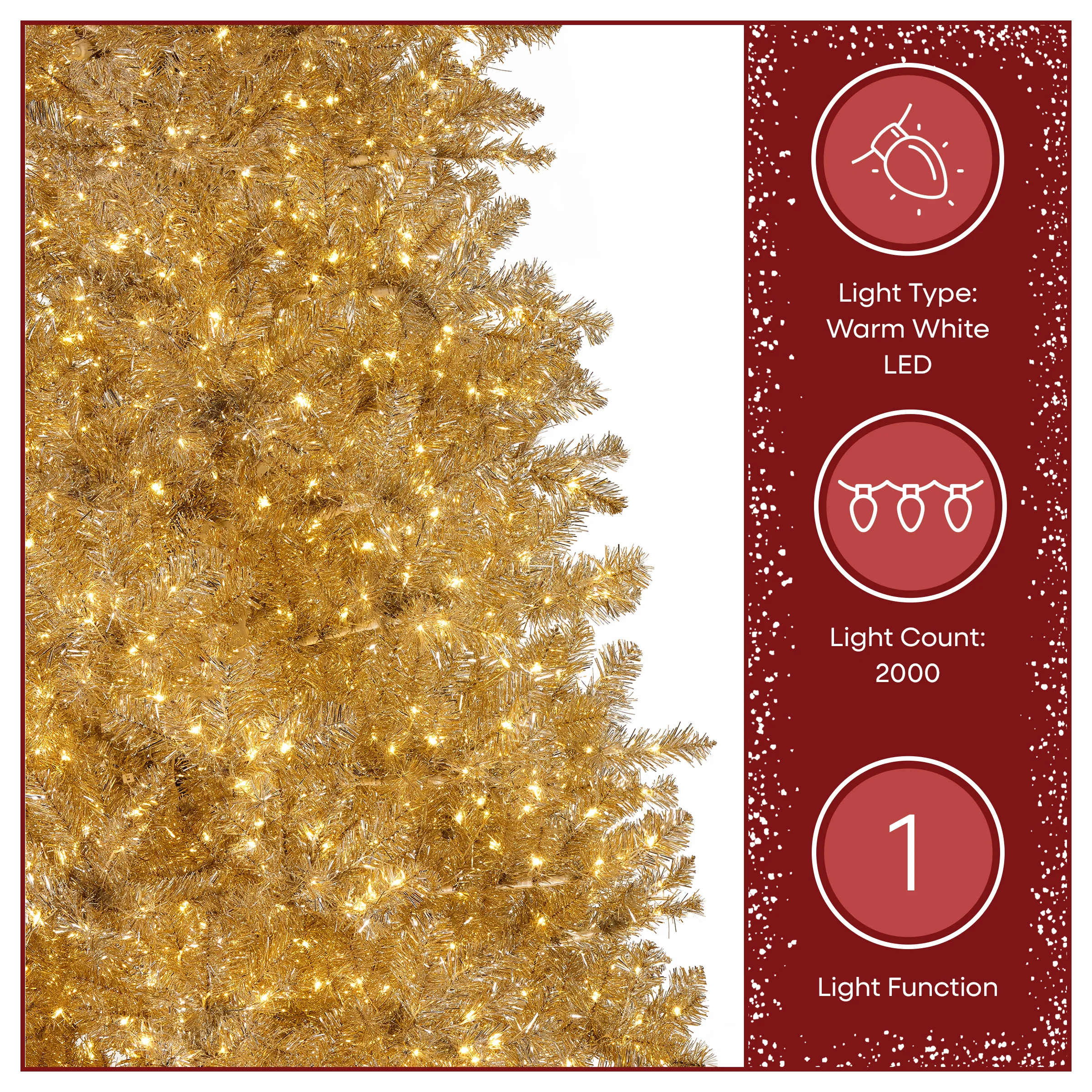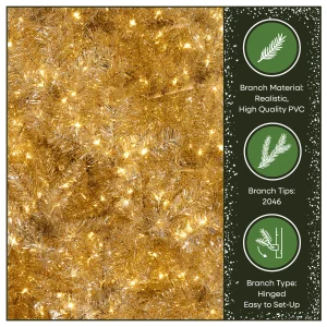 - PRELIT WITH 2,000 LED INFINITY LIGHTS®: Arrives pre-strung with 2,000 LED Infinity Lights® that deliver exceptional brightness and a seamless glow, enhancing the tree’s metallic shimmer