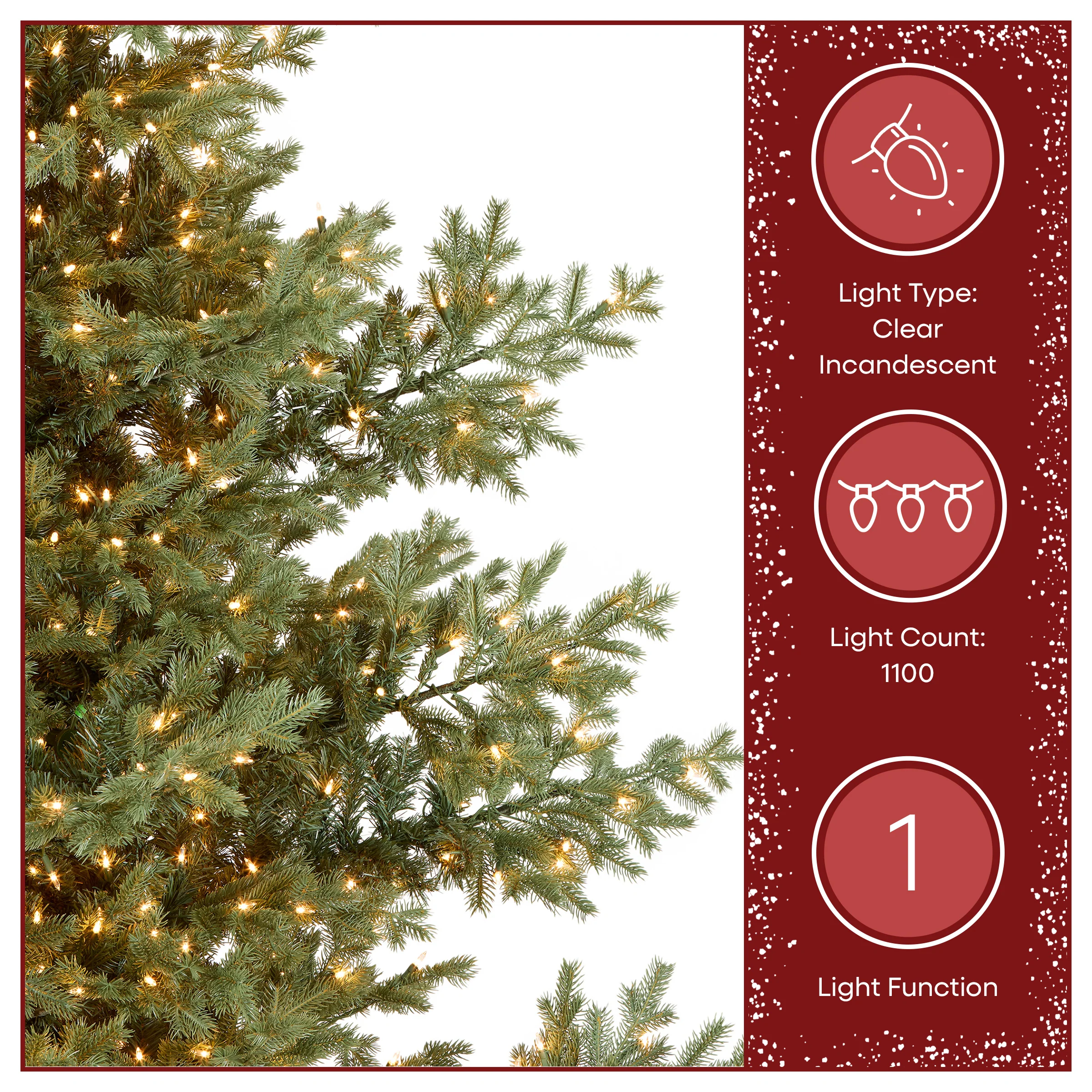 - CHRISTMAS TREE WITH LIGHTS: This Christmas decoration arrives pre-strung with 1,100 clear incandescent lights that remain illuminated even if one bulb goes out, creating a cozy holiday glow