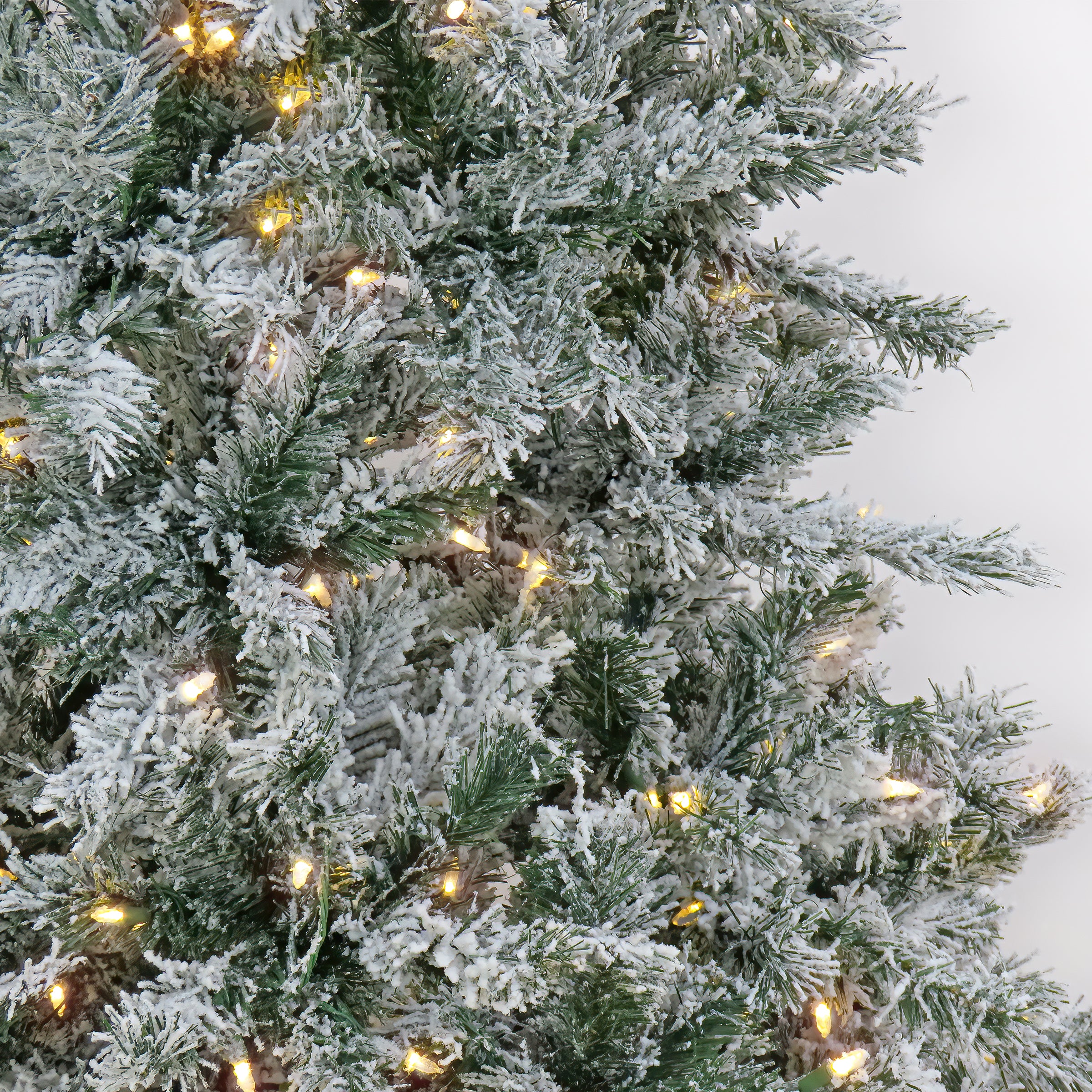 The Snowy Harwich tree features flocked branches for the look of freshly fallen snow and PowerConnect™ through-the-pole lighting system that eliminates the need for connecting multiple light strings. It is pre-lit with 700 warm white LED lights that are long lasting and energy efficient. Crafted with high quality materials and hinged branches for easy set up and includes a sturdy metal folding stand. For indoor display only. Plug in.