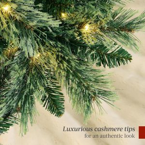 Best Choice Products 6ft Pre-Lit Cashmere Christmas Tree, Premium Artificial Holiday Decor w/Cordless Connection, 2-in-1 LED Lights, Folding Stand