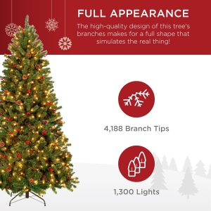 - PRE-DECORATED DESIGN: A collection of hundreds of incandescent lights are complemented by a collection of artificial pine cones and berries to bring a natural ambiance to your home; Number of Lights (4.5ft/6ft/7.5ft/9ft/12ft): 150/250/550/900/1,300