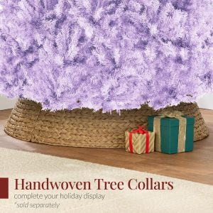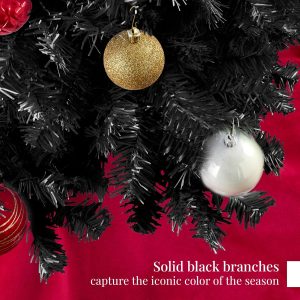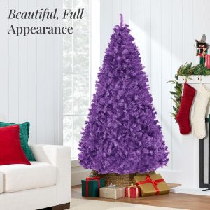 - HIGH-QUALITY MATERIALS: Crafted with durable metal hinges and flame-retardant PVC branches that stand tall with the help of a sturdy metal base, so your tree is ready to look its best for the season ahead!; OVERALL DIMENSIONS: 44″(Dia) x 72″(H) (including stand)