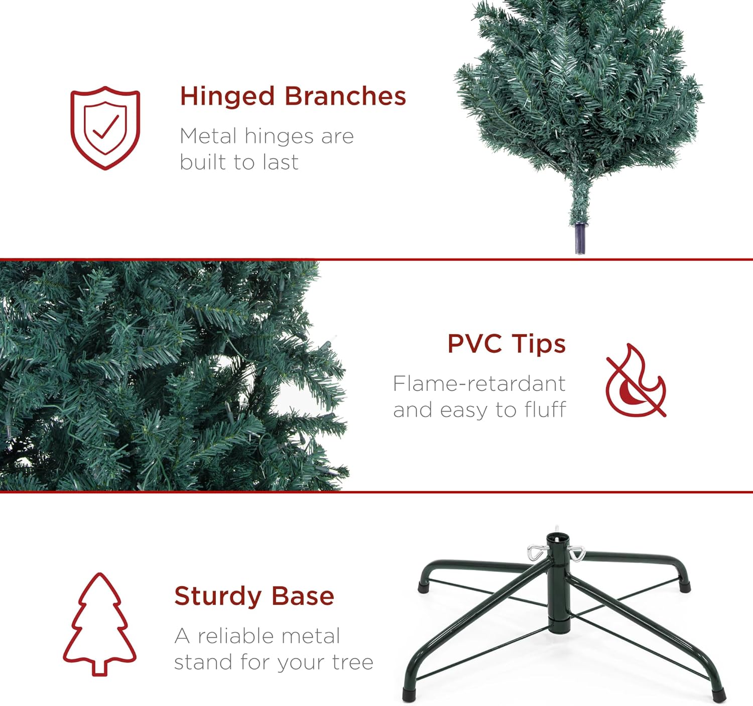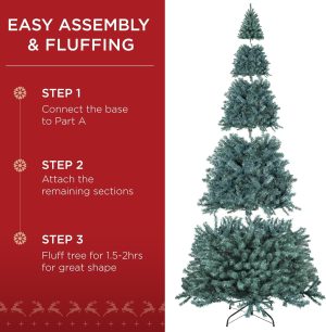 Best Choice Products Artificial Christmas Tree, 7.5ft Premium Unlit Realistic Spruce Holiday Décor w/Dense Branches, Easy Assembly, Metal Base