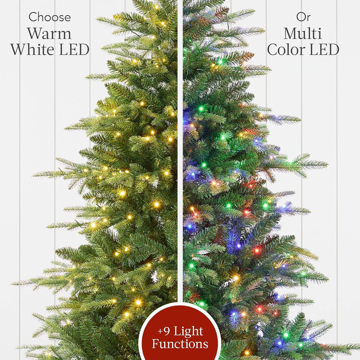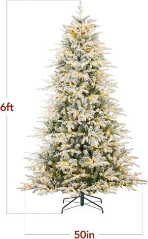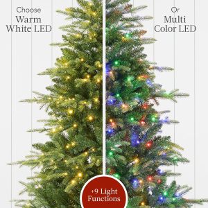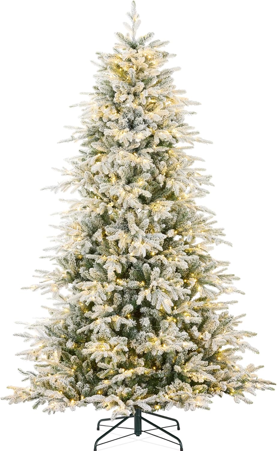 Best Choice Products Full Flocked Aspen Christmas Tree, 9ft Pre-lit Realistic Noble Fir w/ 1,200 Glowing LED Lights, 2-in-1 White & Multicolor