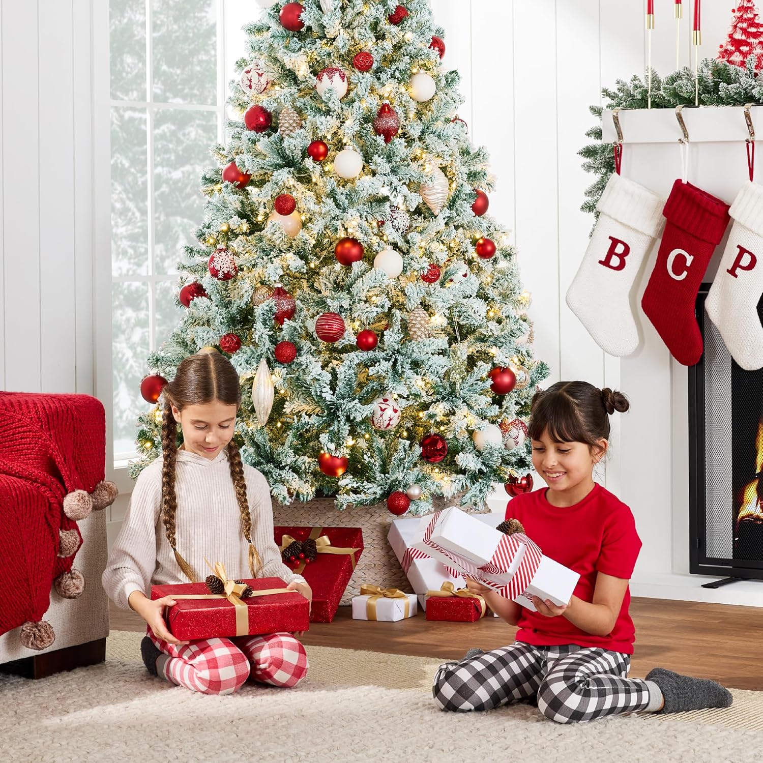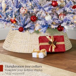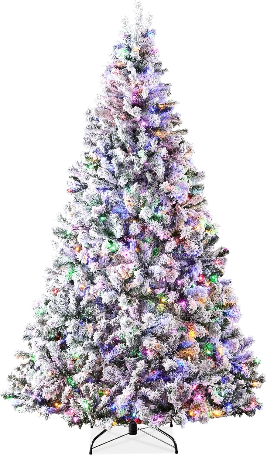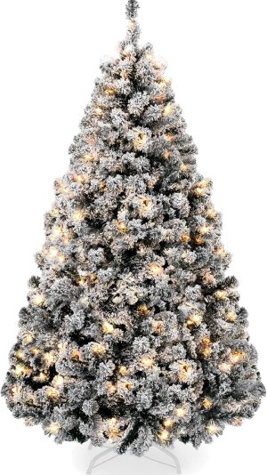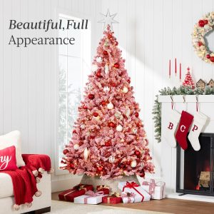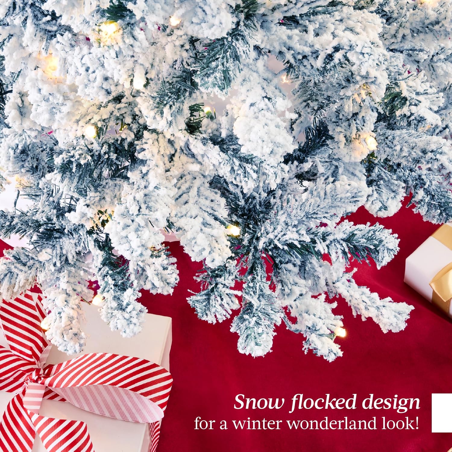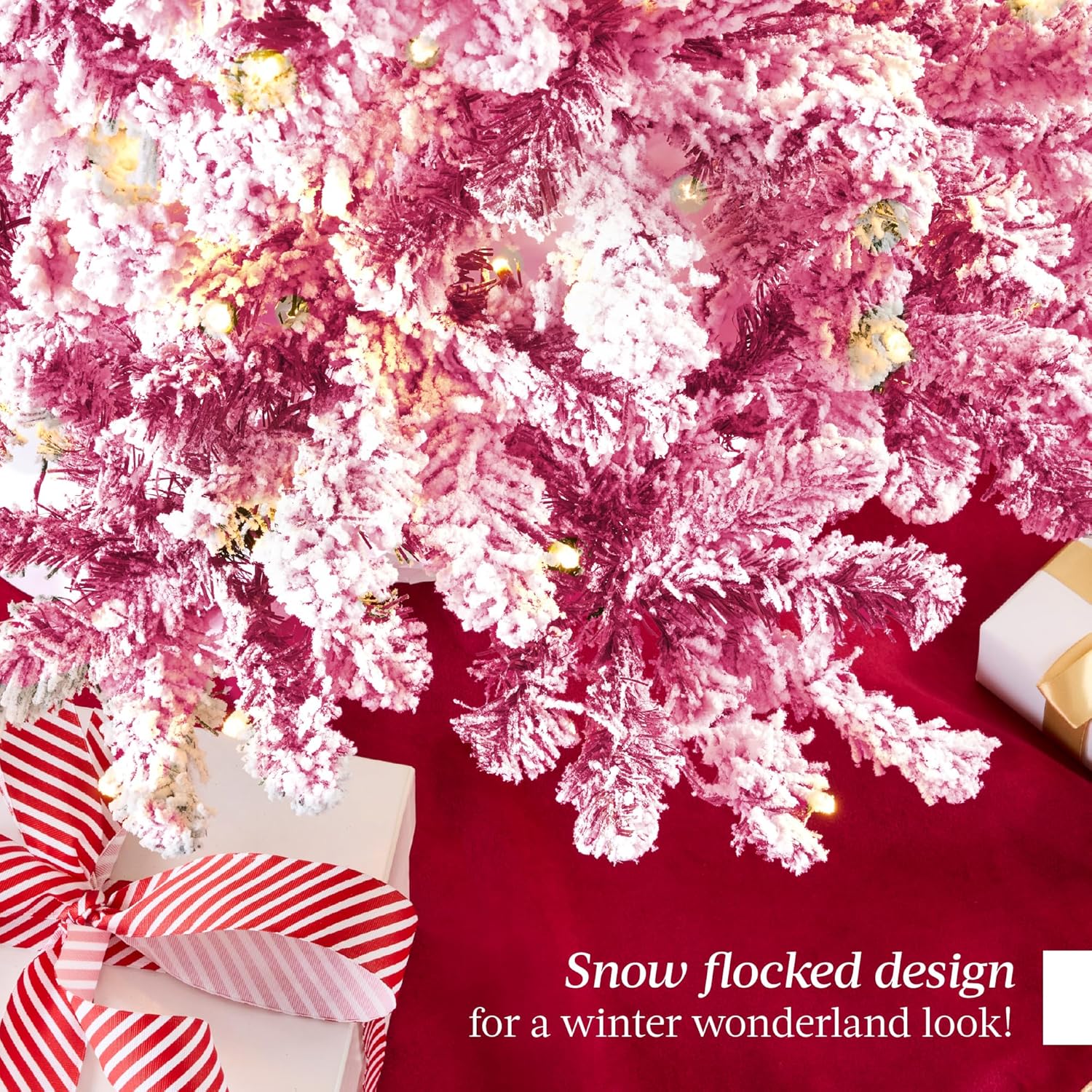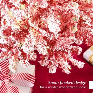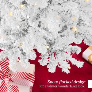- PRE-FLOCKED CHRISTMAS TREE: Experience a white Christmas as the all black PVC pine needles are beautifully enhanced by a snow-flocked finish, transforming your home or office space into a winter wonderland!