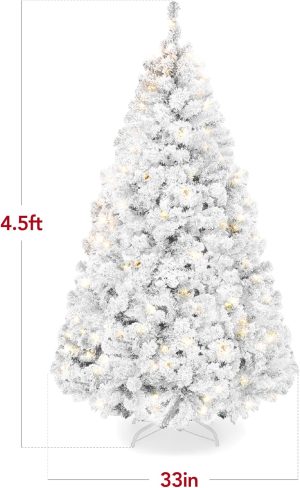 - FULLY LIGHTED: Hundreds of meticulously crafted branch tips are prestrung with dozens of warm white incandescent lights to create a cozy, festive atmosphere. Number of Lights (4.5ft/6ft/7.5ft/9ft): 200/250/550/900; OVERALL DIMENSIONS: 45″(Dia) x 72″(H) (including stand)