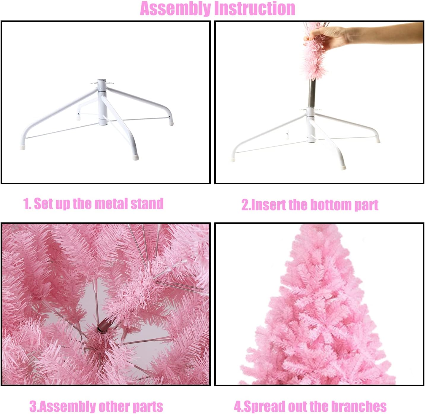 - Easy to Assemble: Each Christmas tree comes with detailed assembly instructions,which you can follow with to set up the tree with the bolts attached. Easy to assemble, lightweight, nice and fluffy. Please give it more patience to spread out all branches, then you will get a full and dense Christmas tree.