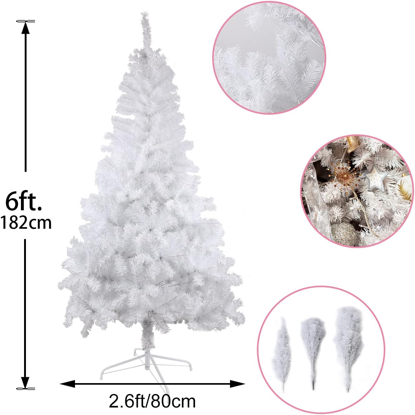 - Size: this artificial Christmas tree measure 6 feet in height and 2.6 feet in diameter. A really thick, bushy tree for value when you open all the branches according our instructions. Perfect size for Christmas home decoration.