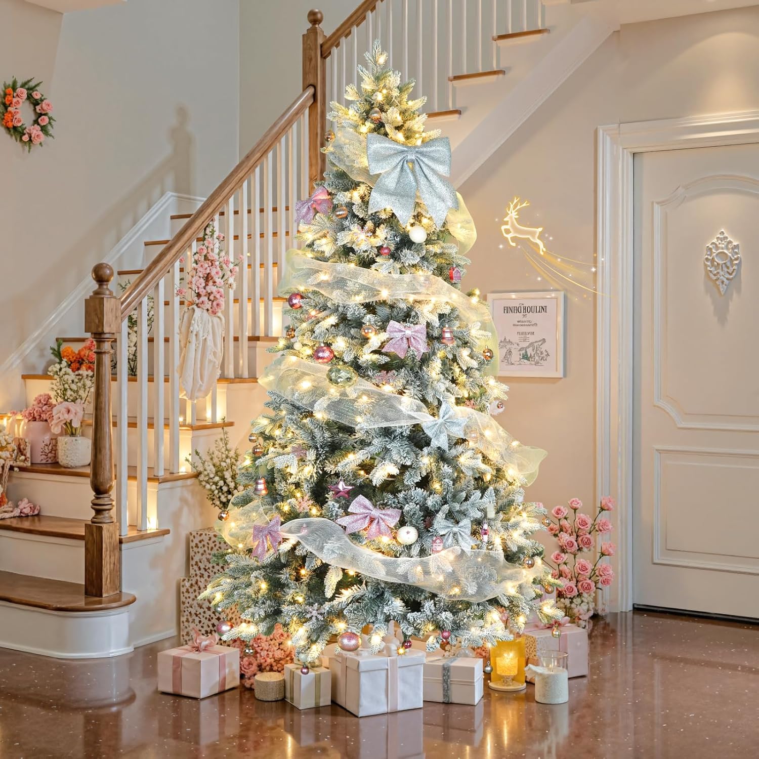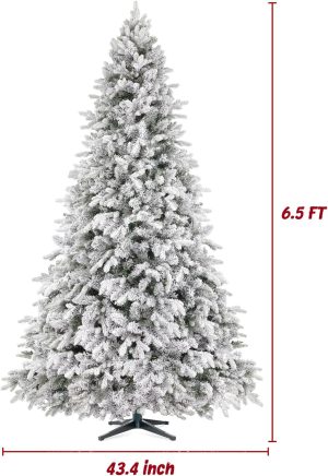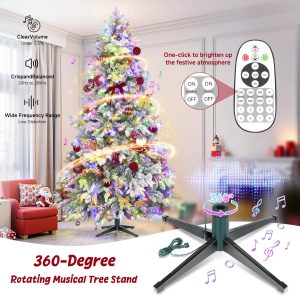 Chogglevue 7.5ft 360° Rotating Pre-Lit Snow Flocked Christmas Tree, Built-in Music, Remote Control, 8 Light-Modes, White Christmas Tree for Home Decor