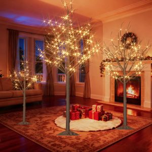 - Christmas Tree With Led Lights: This set of 3 outdoor trees includes lighted trees measuring 4, 6, and 8 feet tall. The life like birch tree design, complete with LED lights, adds charm and elegance to your outdoor decor, making it the perfect lighted Christmas tree display