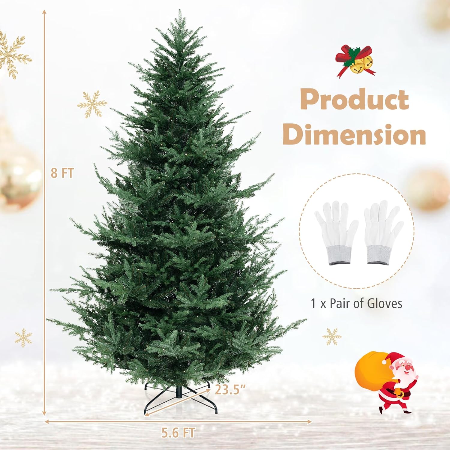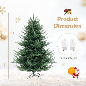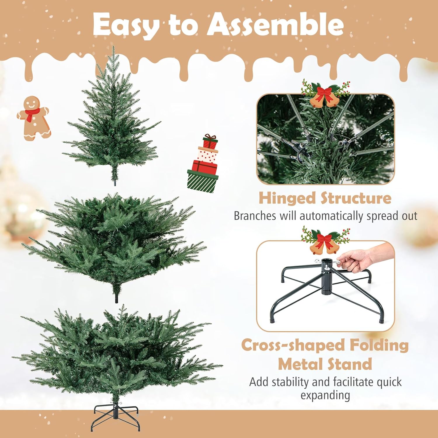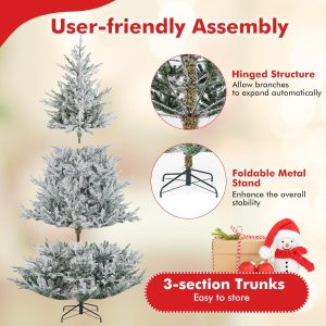 - Hassle-free Setup & Storage: The hinged structure allows the branches to auto spread out, saving you time and effort during setup. Additionally, the full Christmas tree's 4-section design enables compact storage once the holiday season is over. As a bonus, we provide a pair of gloves to ensure pleasant assembly.