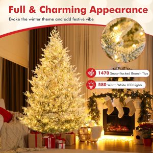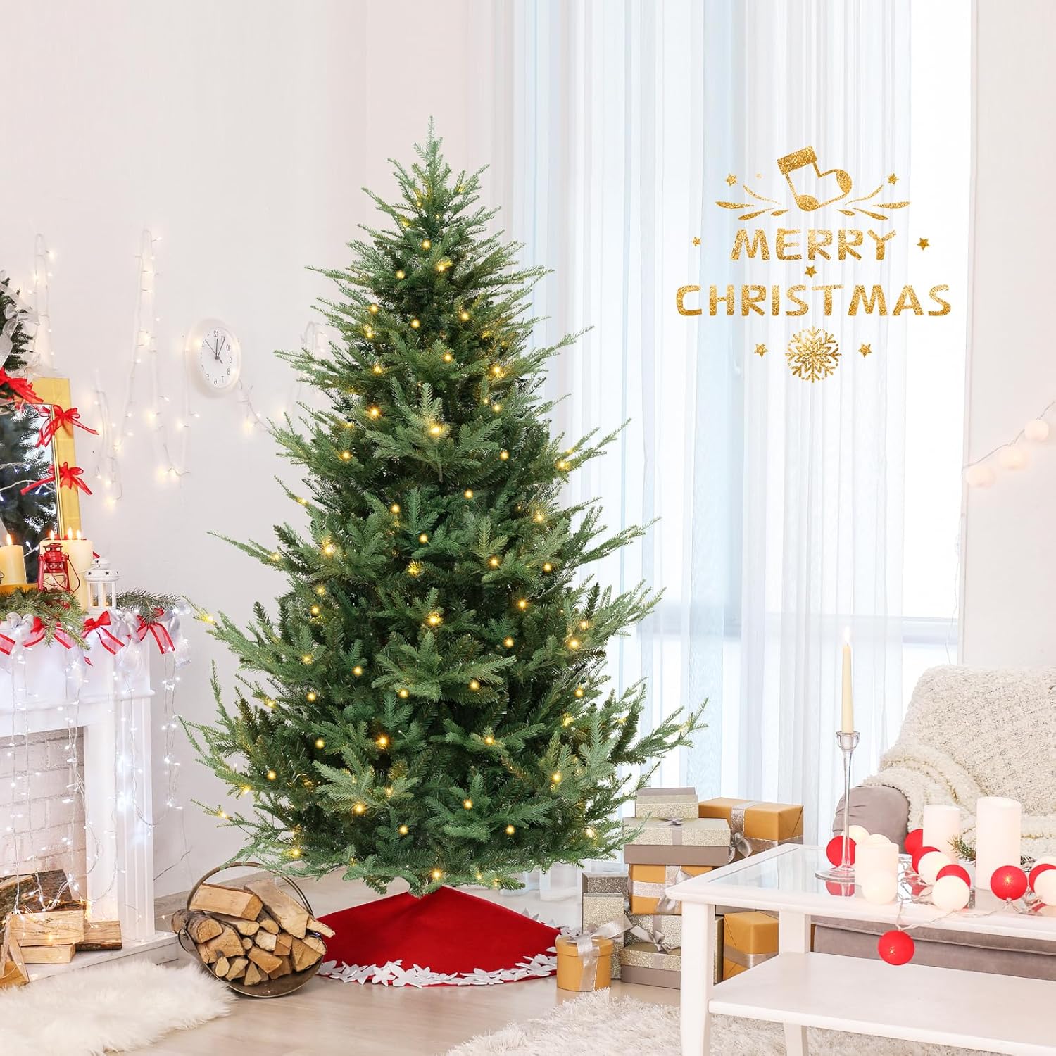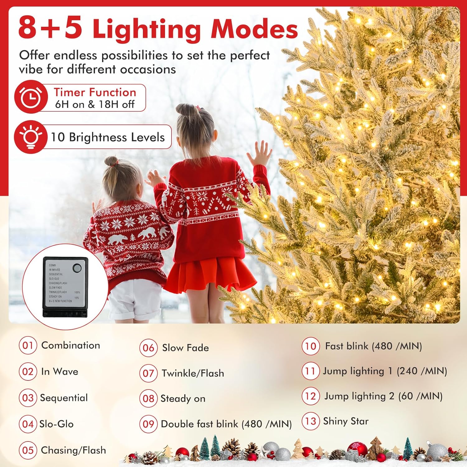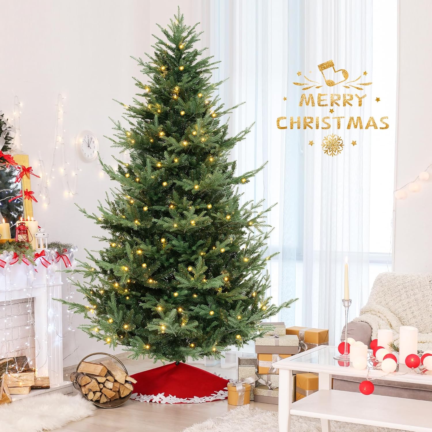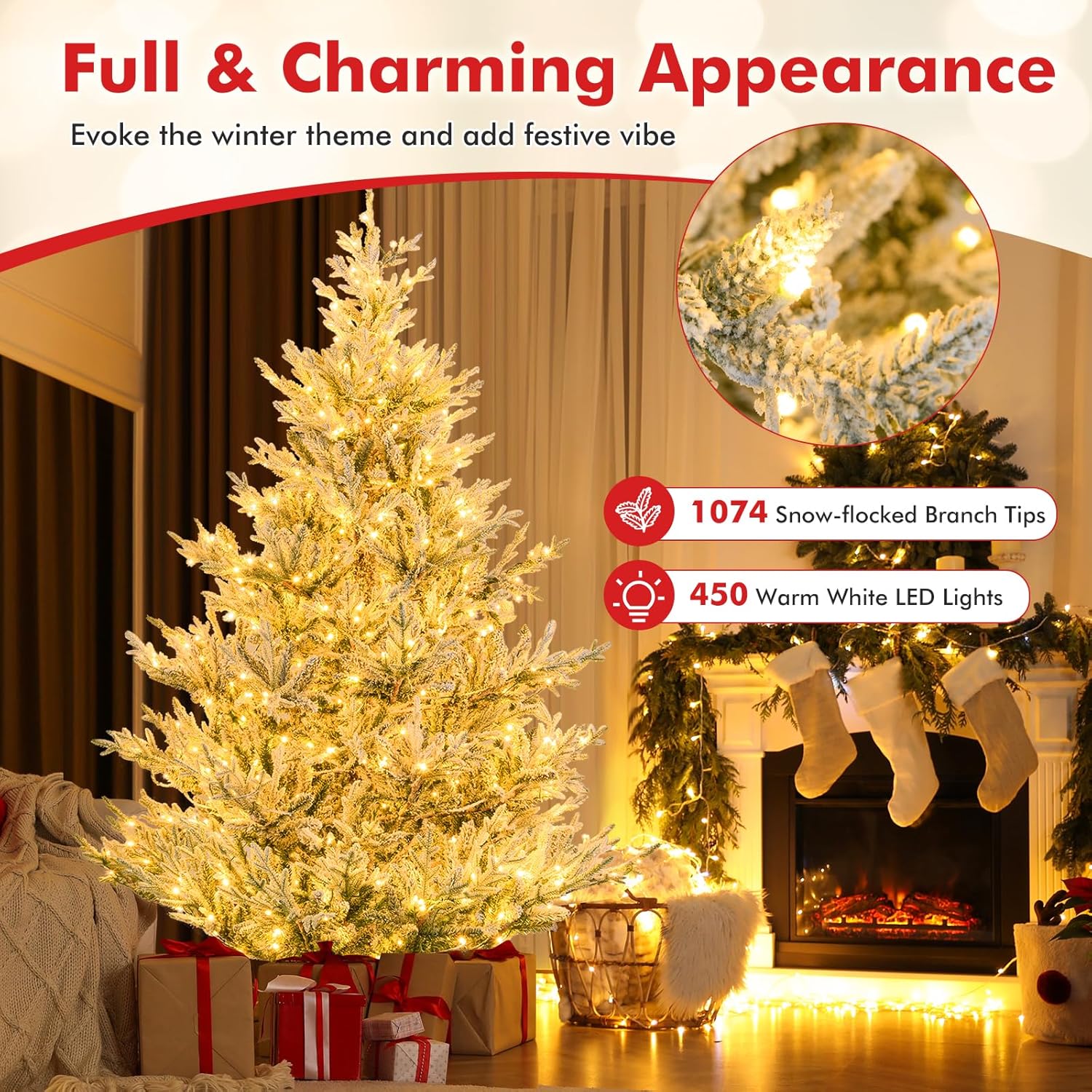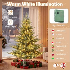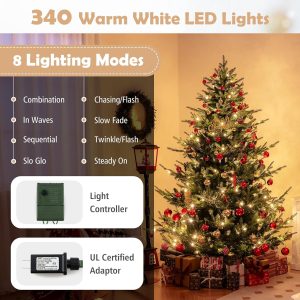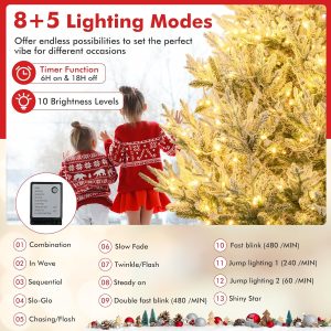 - Adjustable Lighting Modes: Adorned with 450 LED lights that emit warm-white lighting, the pre-lit Xmas tree adds a delightful ambiance to your living space. With 8 dynamic lighting modes to choose, you can customize your lighting display and create a mesmerizing holiday show.