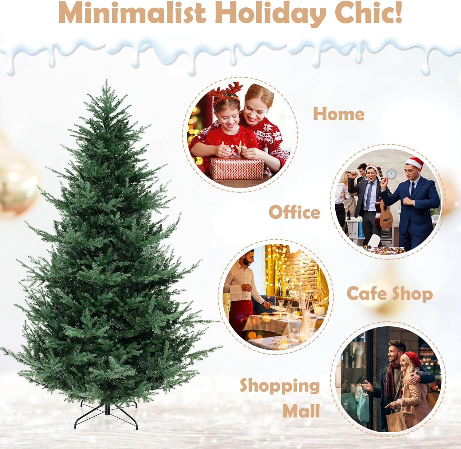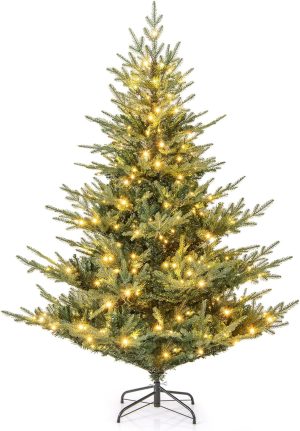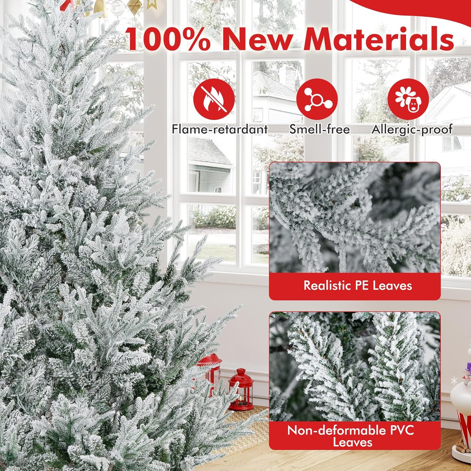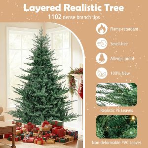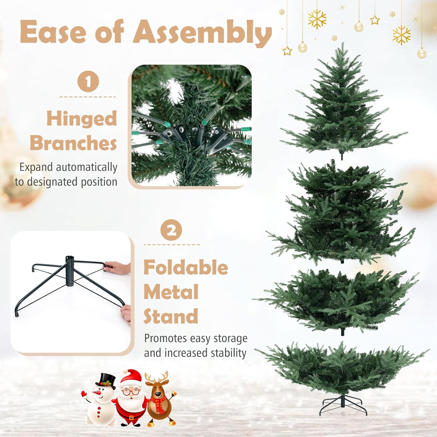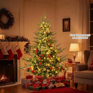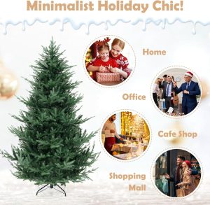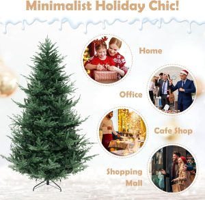 - Selected Materials & Stable Base: Crafted from PVC and PE materials with flame-retardant, non-odor, and non-allergic properties, the hinged Christmas tree ensures worry-free experience. Moreover, a sturdy crossed metal base with anti-slip pads is included to provide excellent stability.