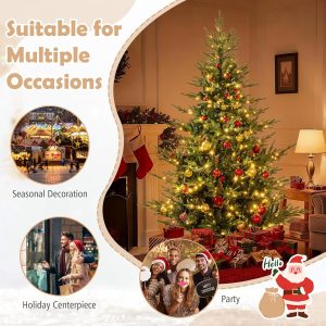 - Lush & Lifelike Appearance: The 8 ft artificial Christmas tree boasts 1480 lush branch tips, creating a vivid appearance that will captivate all who gaze upon it. More importantly, the 2 types of leaves, including soft PE leaves and verdant PVC leaves, will ensure a realistic and natural look.