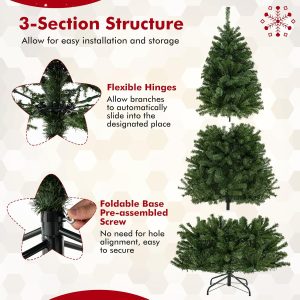 - 🎄Hinged Design for Easy Fluff and Assemble: All hinged construction makes the artificial tree easy to fluff and set up, saving you a lot of time and effort. In addition, the Christmas tree can be divided into 4 sections and placed in a storage bag, allowing you to store it for future reuse conveniently.