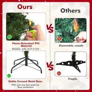 - 🎄Sturdy Metal Stand: This snow flocked Xmas tree features an X-shaped iron stand that provides strong support. Compared with other cheap plastic bases, our metal stand is more stable and breakage-resistant, keeping it standing upright for years to come. Besides, the metal stand is foldable to facilitate storage.