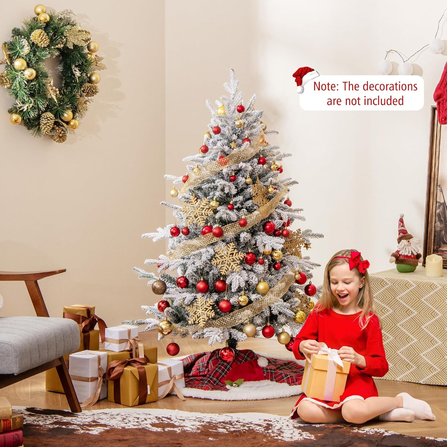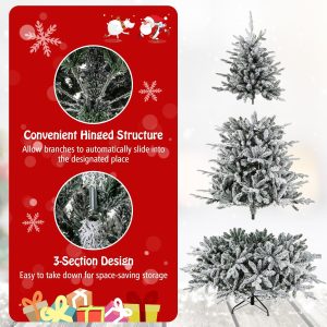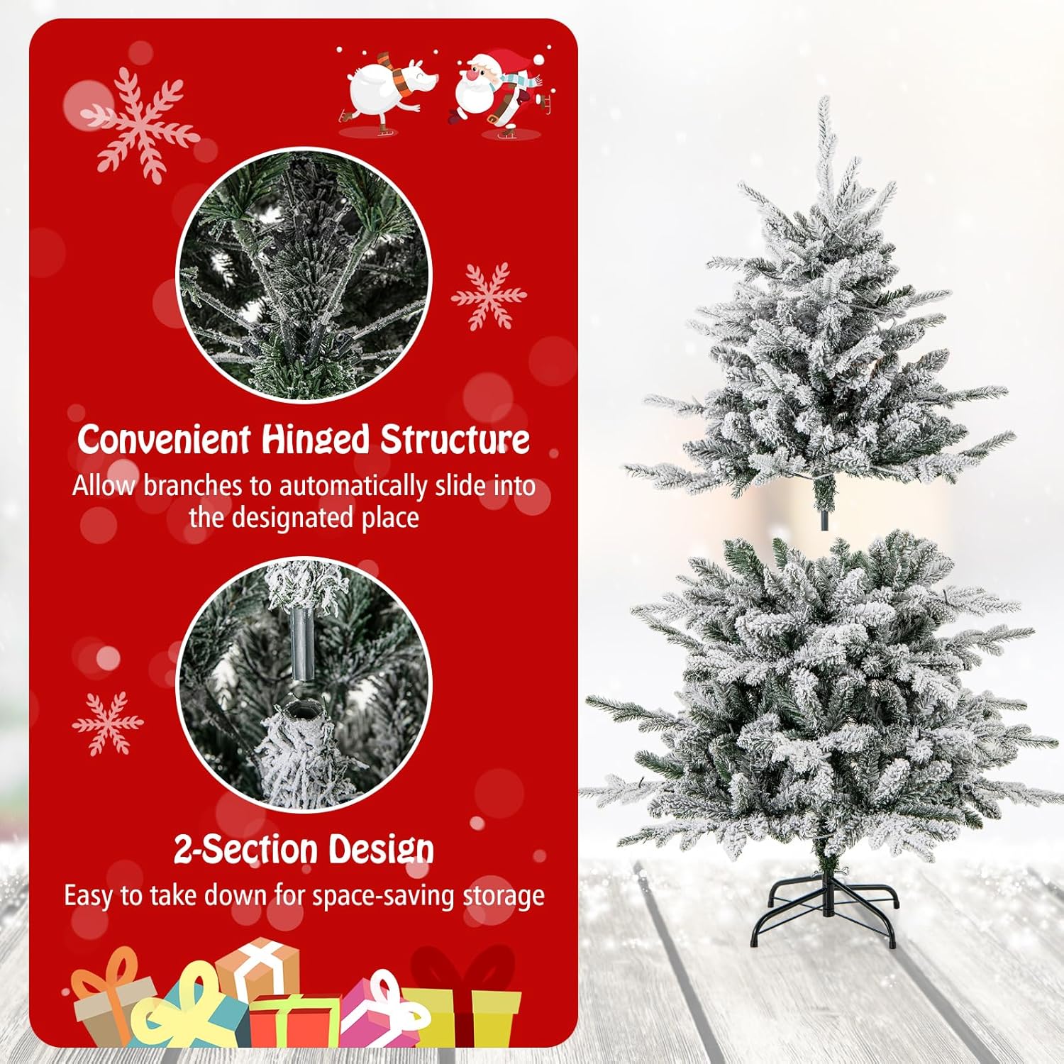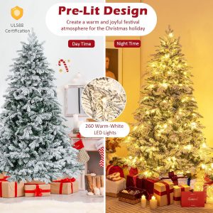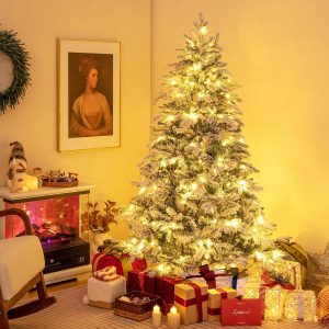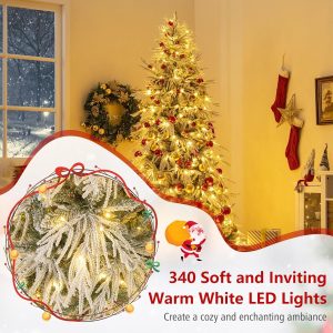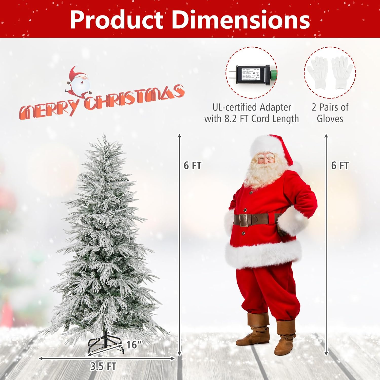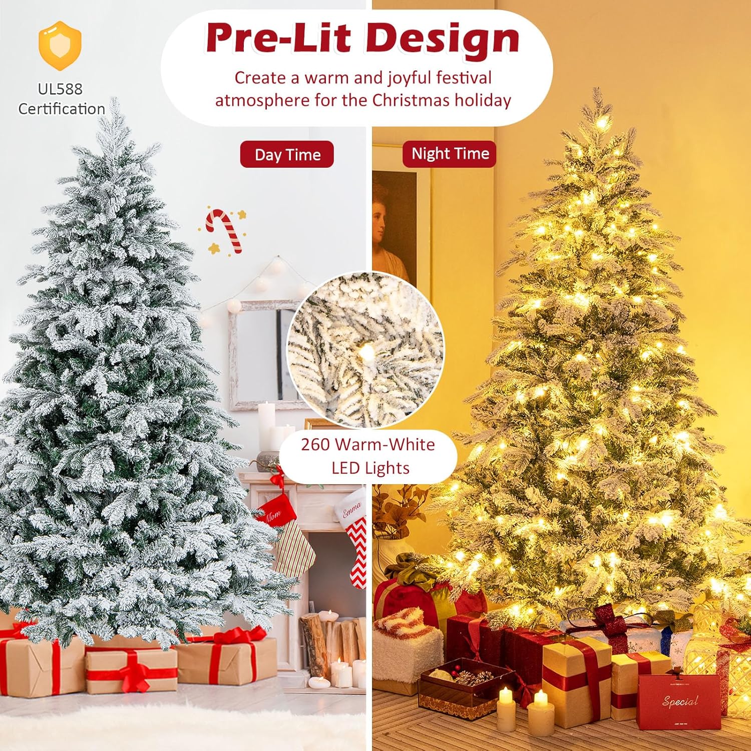 Goplus 8 FT Pre-Lit Artificial Christmas Tree, Hinged Full Xmas Tree with 1470 PVC & Soft TPE Branch Tips, 470 Warm White LED Lights, Foldable Metal Stand, Home Office Holiday Decoration