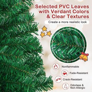 - Flame-Retardant PVC Material: Made from high-quality PVC material, this artificial Christmas tree is flame-retardant, non-odor, and non-allergenic, providing a safe option for your home. The fake leaves are crack-resistant and require no maintenance, ensuring long-term use.