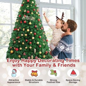 - Sturdy & Stable Metal Base: The full-bodied Christmas tree is securely supported by a sturdy crossed metal base, connected to the trunk with 3 reinforced screws for exceptional sturdiness and stability. Non-slip footpads on the bottom ensure that your floors are protected from scratches.