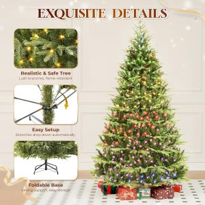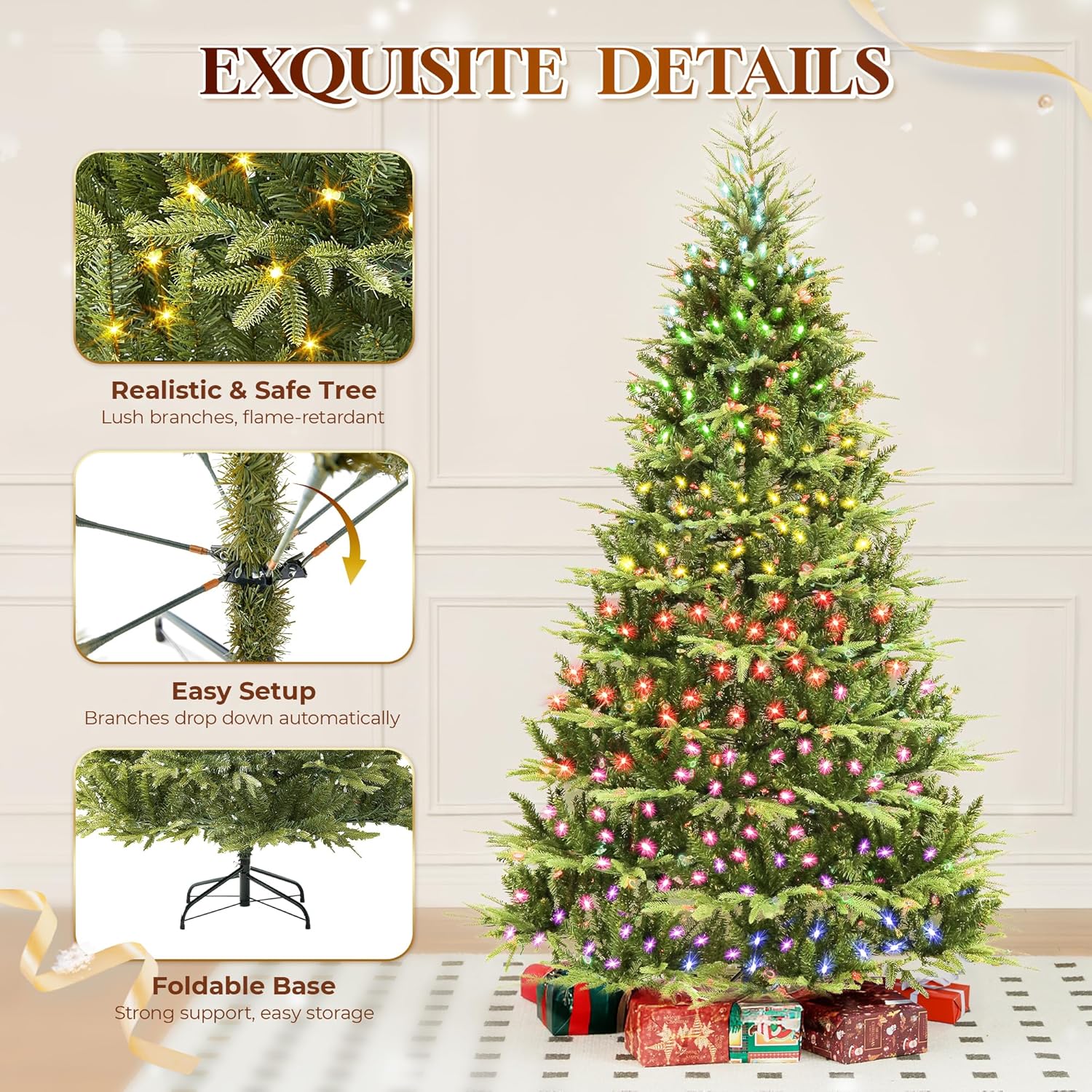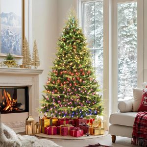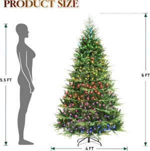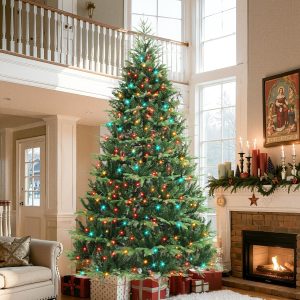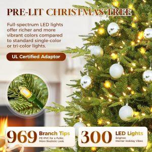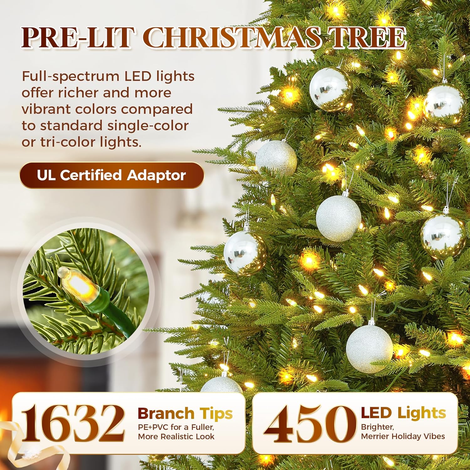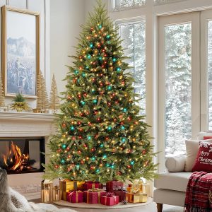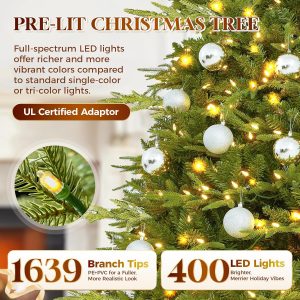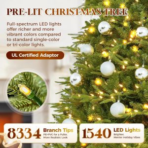 - 【Full & Realistic Look】Made with 8334 branch tips combining PE and PVC, this lighted Christmas tree looks lush, lifelike, and full from every angle. The PE tips add a natural, fresh-cut look that won’t easily fade or lose shape, while also being fire-resistant for peace of mind